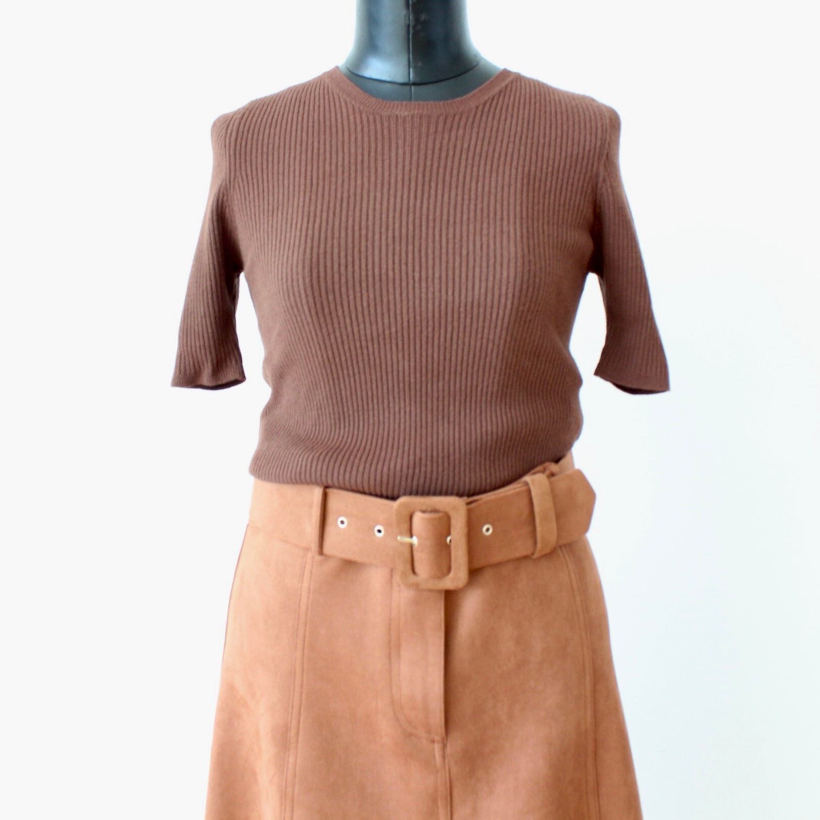 RINASCIMENTO ブラウンクルーネック半袖サマーリブニット ITALY: RIN11919 ¥16,000+tax