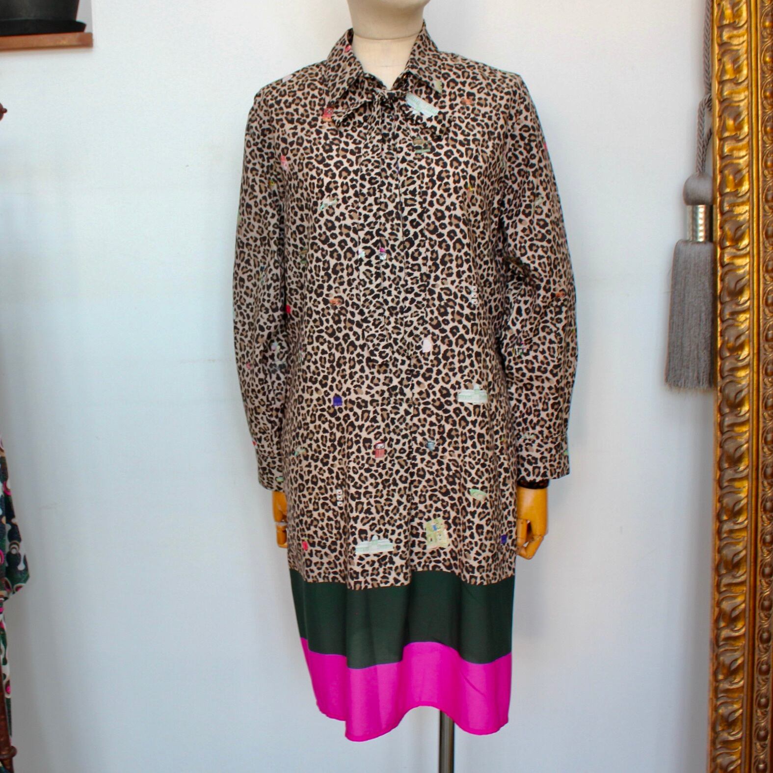VILAGALLO レオパード+ミニイラストプリントグリーンピンクラインコットンシャツワンピース SPAIN: VIL32926 ¥35,000+tax