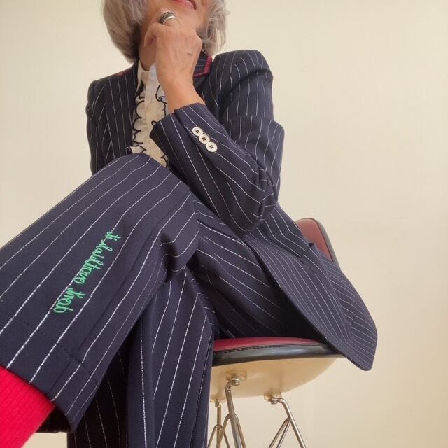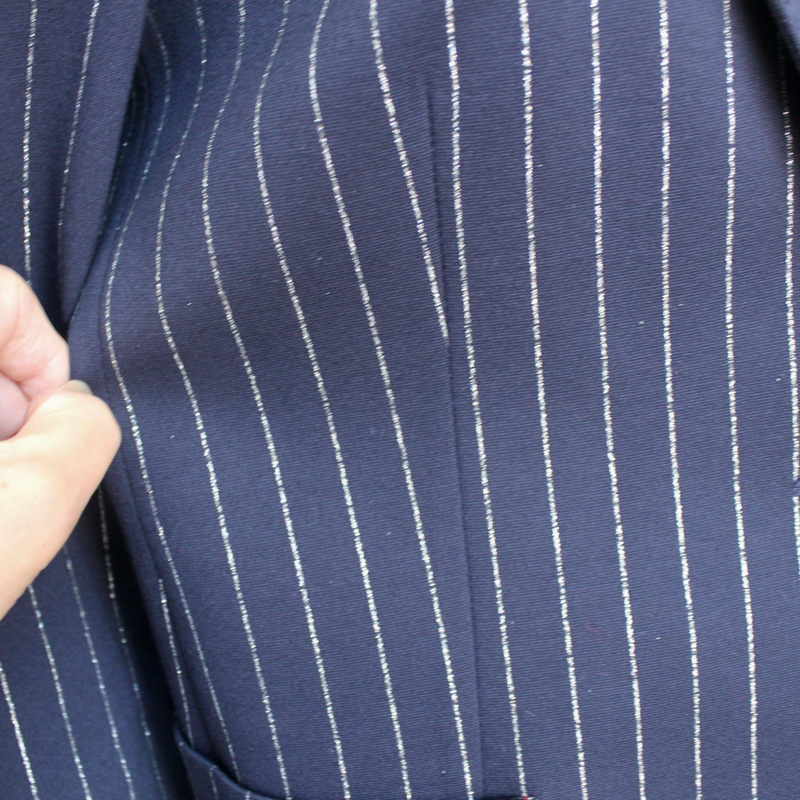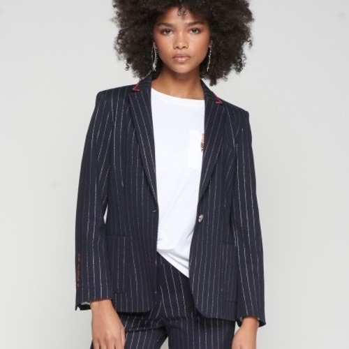 VILAGALLO ダークネイビー✖️シルバーラメピンストライプストレッチジャケット SPAIN: VIL32719 ¥64,000+tax