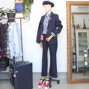 このジャケットは、パンツやスカートと簡単にコーディネートできるため、カジュアルな日常からビジネスシーン、さらには特別なイベントまで幅広くお使いいただけます!さらに、シンプルなトップスと合わせることで、スタイリッシュかつ洗練された印象を作り出します。同素材のパンツとセットアップ合わせて、更にシャープなビジネススタイルに、ちょっぴり可愛いギンガムシャツと合わせて、フレンチスタイルに仕上げてみました。