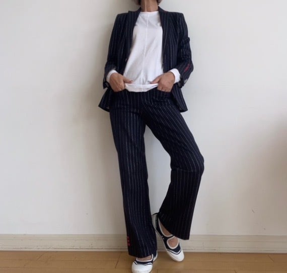 VILAGALLO ダークネイビー✖️シルバーラメピンストライプストレッチセットアップパンツ SPAIN:VIL32720 ¥26.000+tax