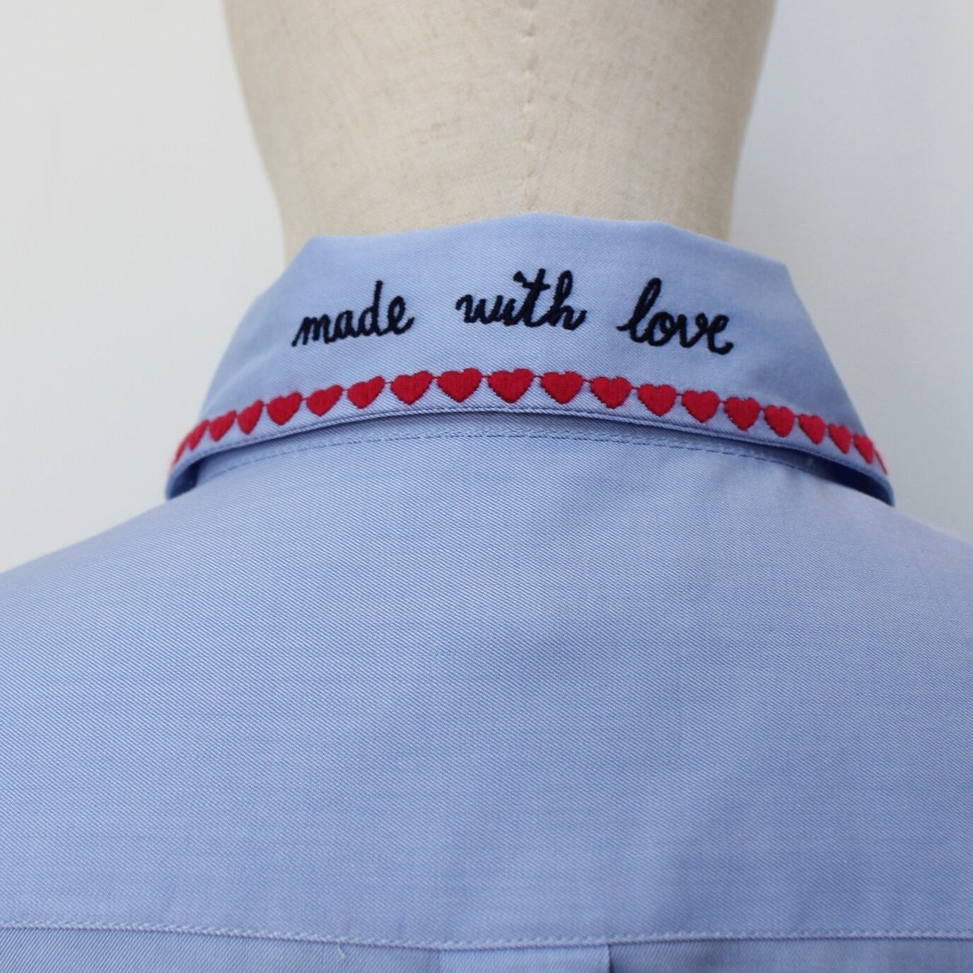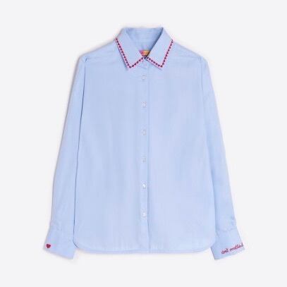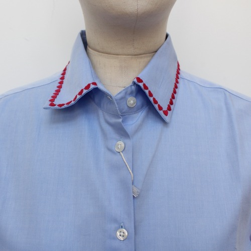 VILAGALLO ブルー刺繍ポイントストレッチコットンシャツ SPAIN: VIL32659 ¥29,000+tax
