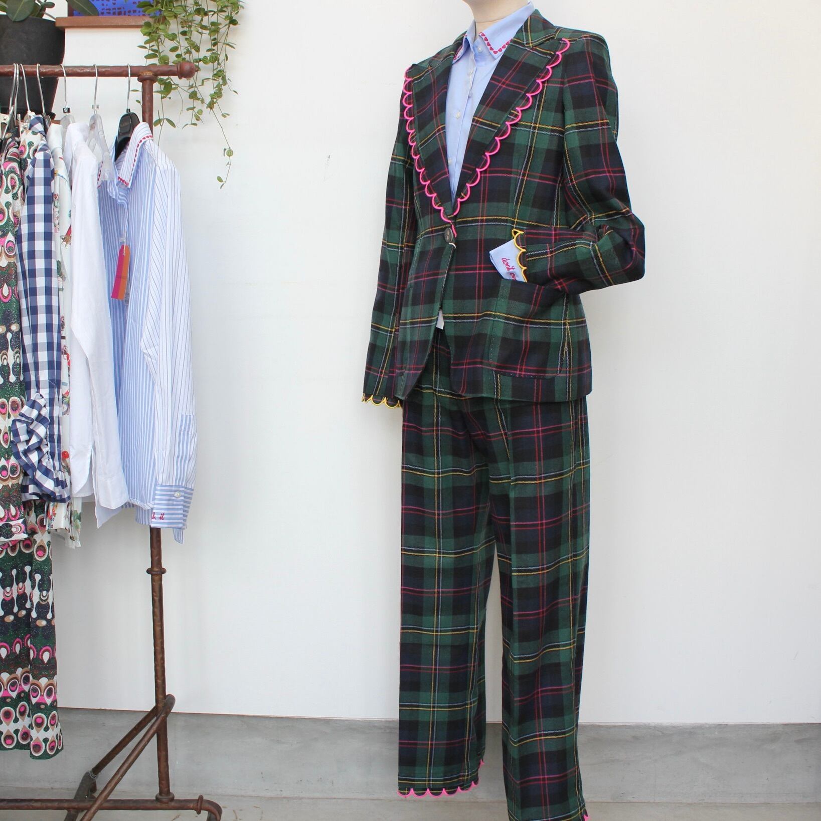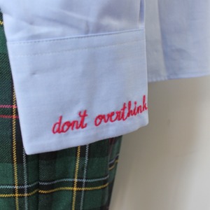 このシャツは、デニムとのカジュアルな組み合わせから、タイトなスカートやスラックスとのきれいめスタイルまで、幅広くスタイリングを楽しめます!さらに、軽やかなアウターを羽織ることで、特別なシーンにも対応できるのが特徴です。刺繍ポイントがシンプルながらも洗練された印象を与え、さまざまなシーンでのコーディネートを楽しむことができます。今日は、チェックのセットアップと合わせて、フレンチスタイルの清潔感のある爽やかな印象に仕上げてみました。