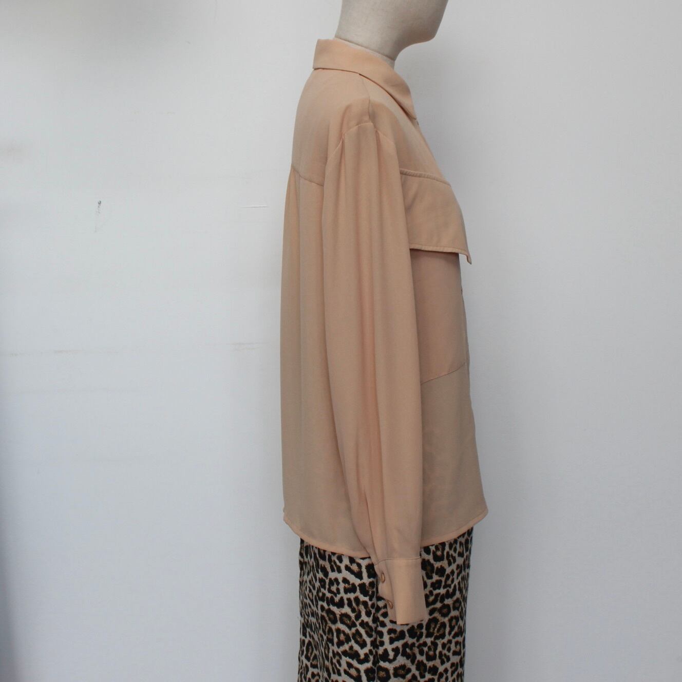 **SILVIAN HEACH ベージュカラーポリエステルポケットデザイン滑らかブラウスは、柔らかなベージュカラーにシンプルで洗練されたデザイン大きめのポケットラップデザインが施された、エレガントなお洒落を手軽に実現できるアイテムです!滑らかなポリエステル素材により、女性らしく快適な着心地を提供し、優雅なシルエットを演出します♪ イタリア製の高品質な仕立てで、様々な場面での着用が期待できる一着です。**