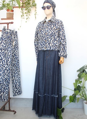 GAUDI ネイビーレオパードプリントストレートデニムパンツ  ITALY:521BD25020 ¥33,000➕tax