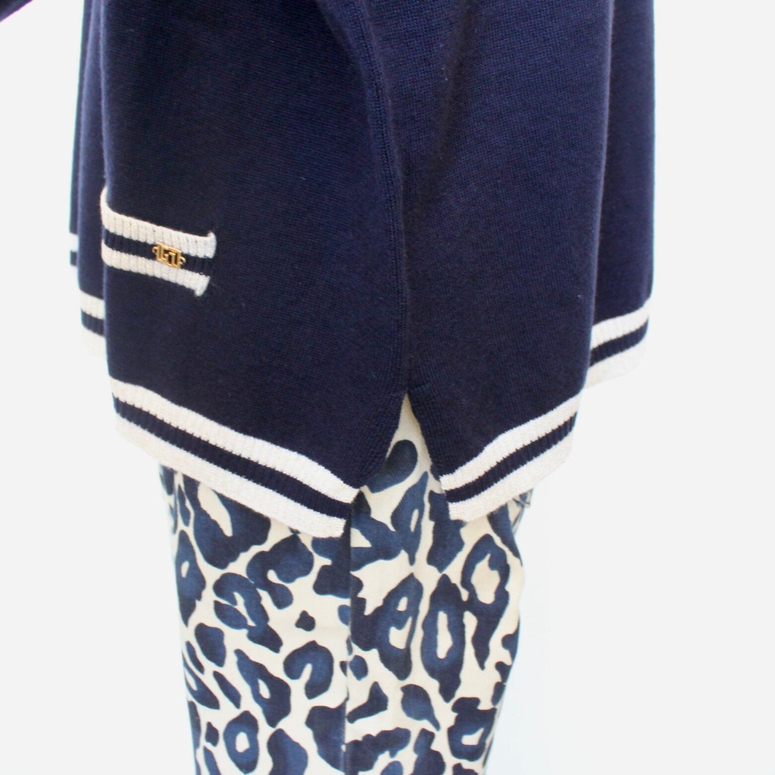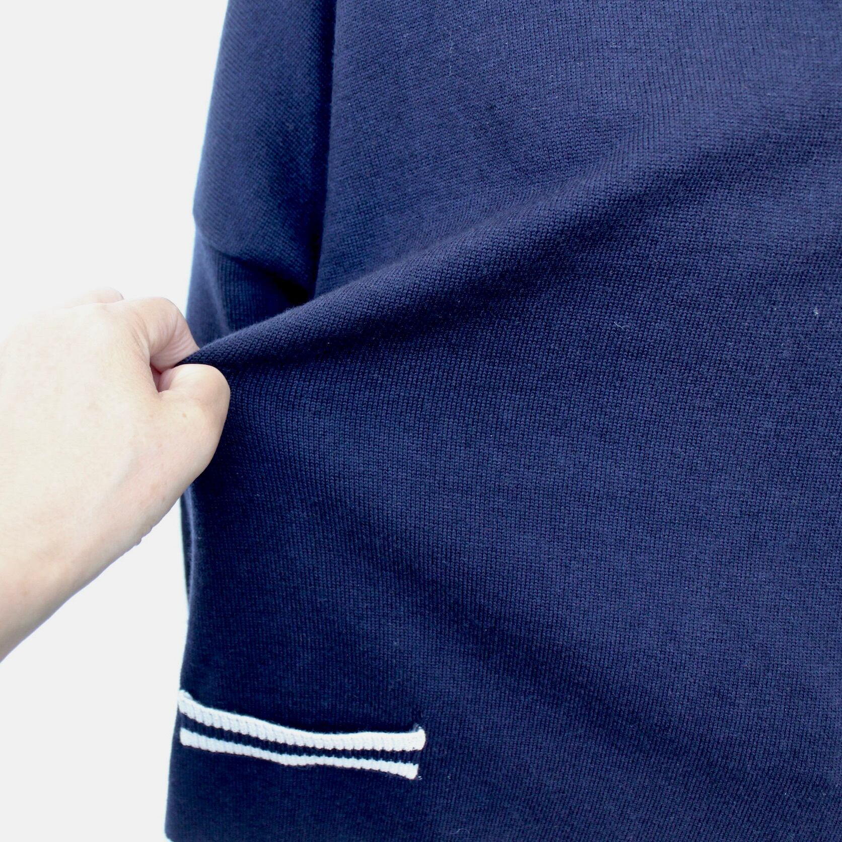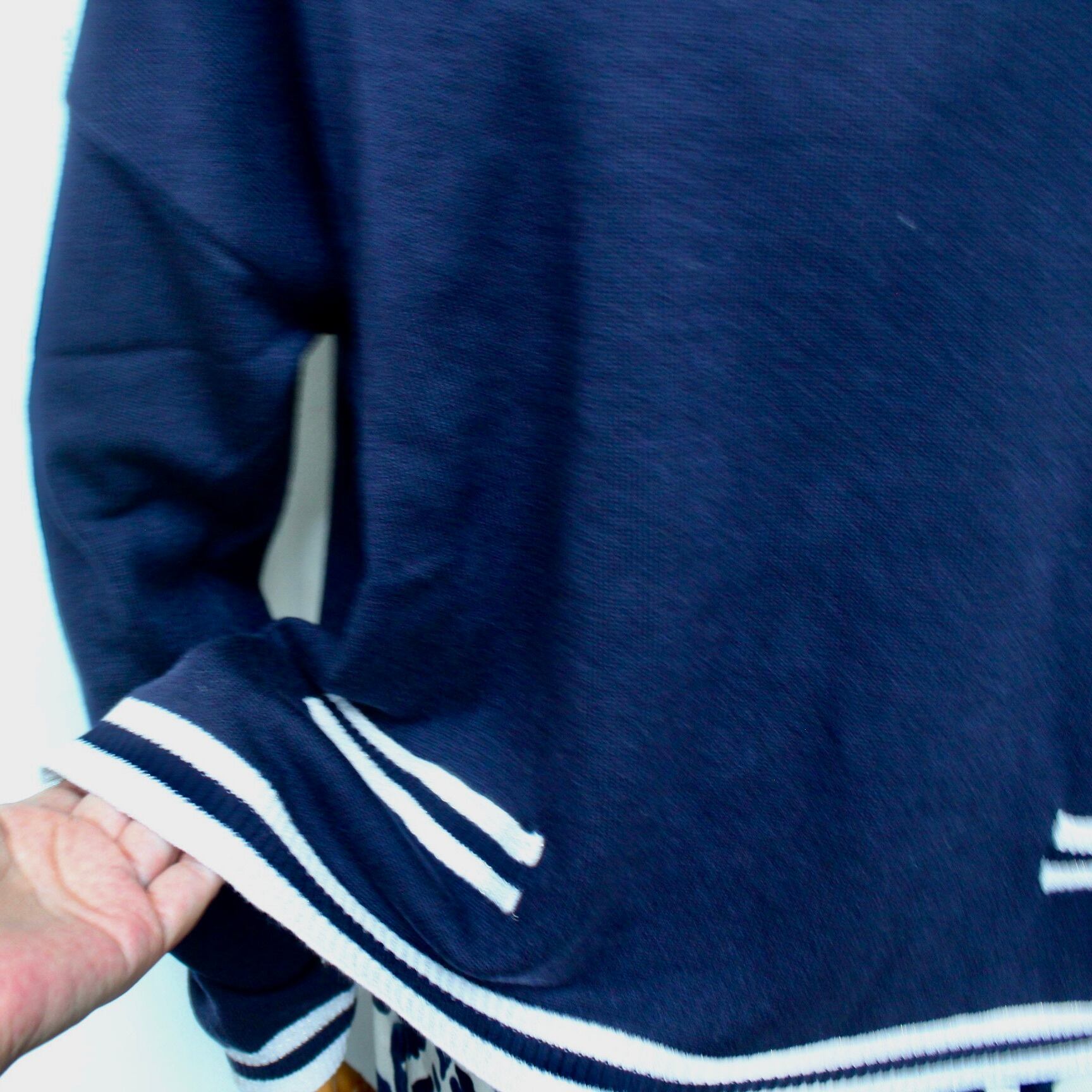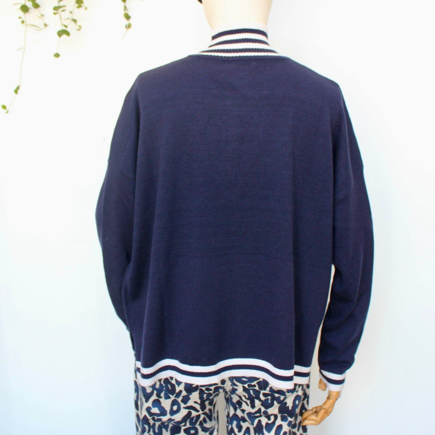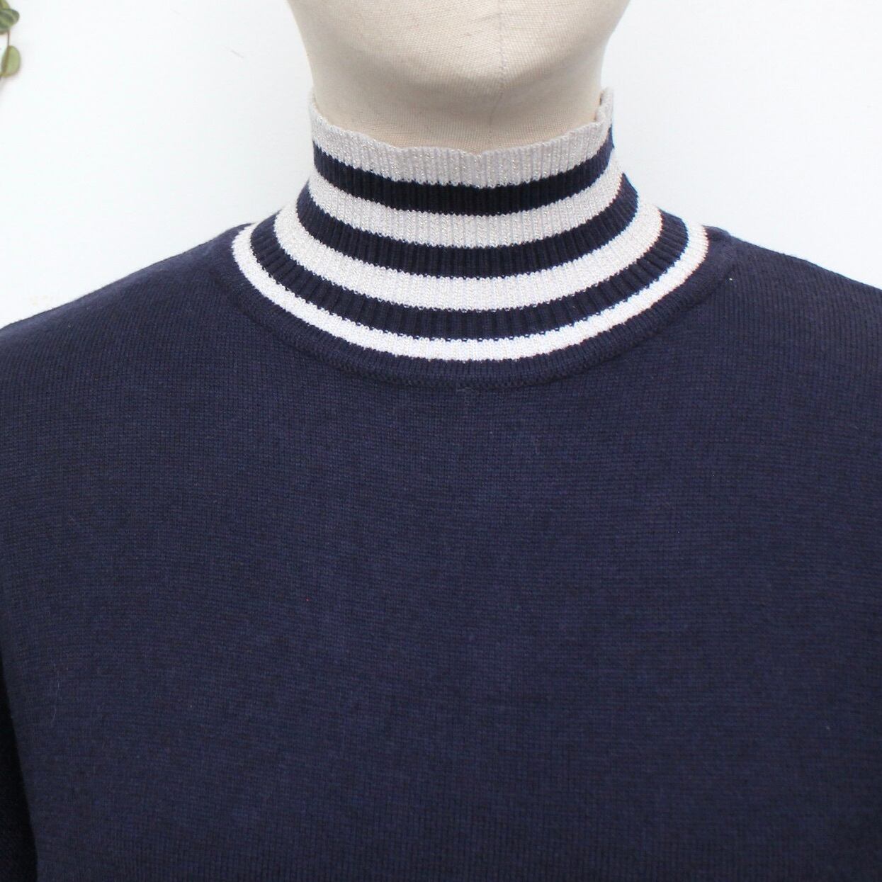 **GAUDI ネイビーシルバーラメニットラインポイントオーバーセーターは、清楚なネイビーカラーで、エレガントな質感カジュアルなデザインが魅力のアイテムです!深いネイビーカラーにシルバーラメが施されたニットは、上品さと遊び心を兼ね備え、スタイリングに特別なアクセントを加えます♪ 上質なニット素材を使用しており、柔らかな着心地で温かさも感じられる一着です。オーバーサイズのシルエットがトレンド感を演出し、リラックスした印象を与えつつも、洗練されたスタイルを作り出します。**