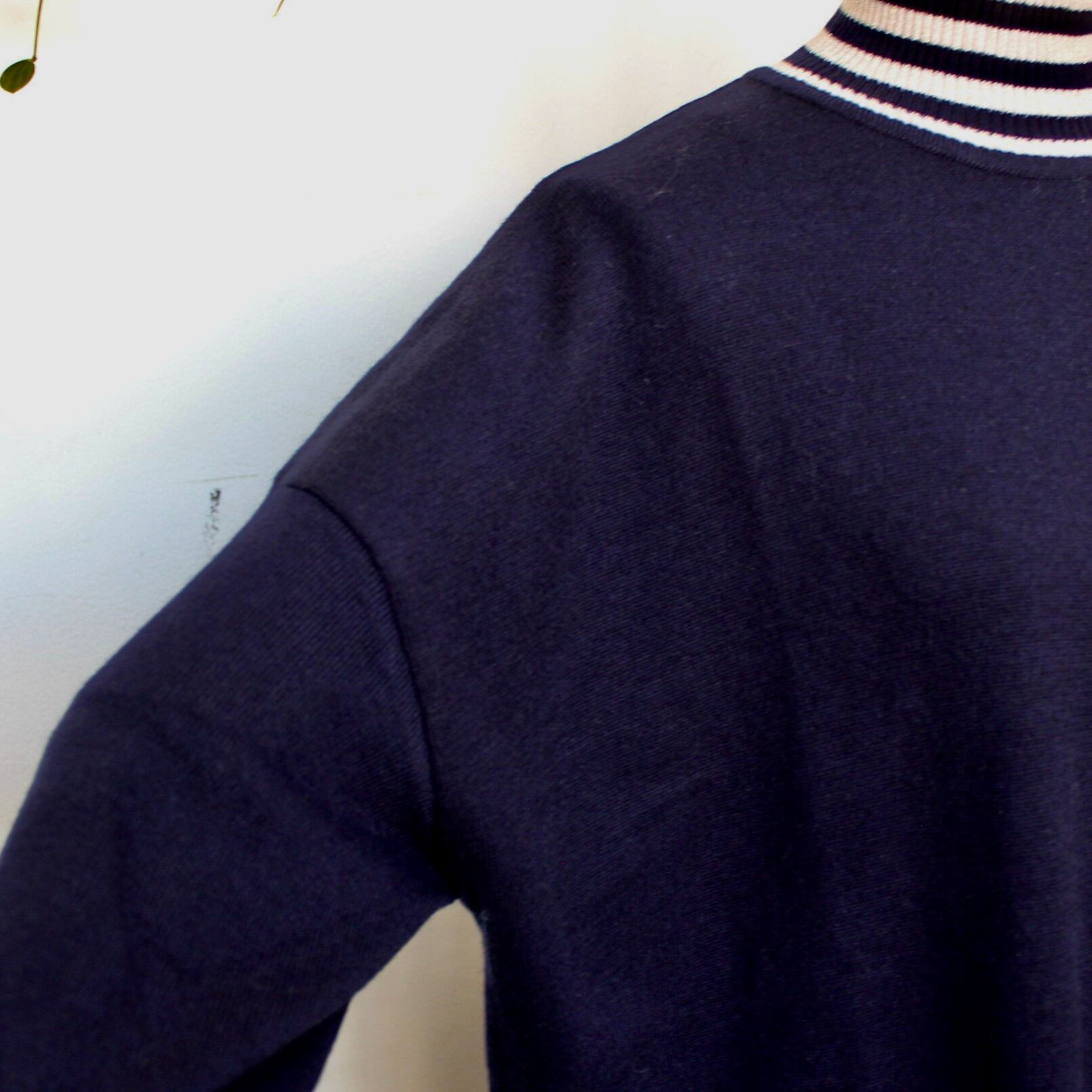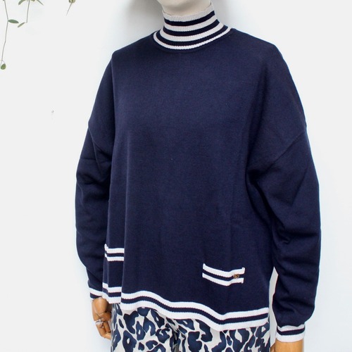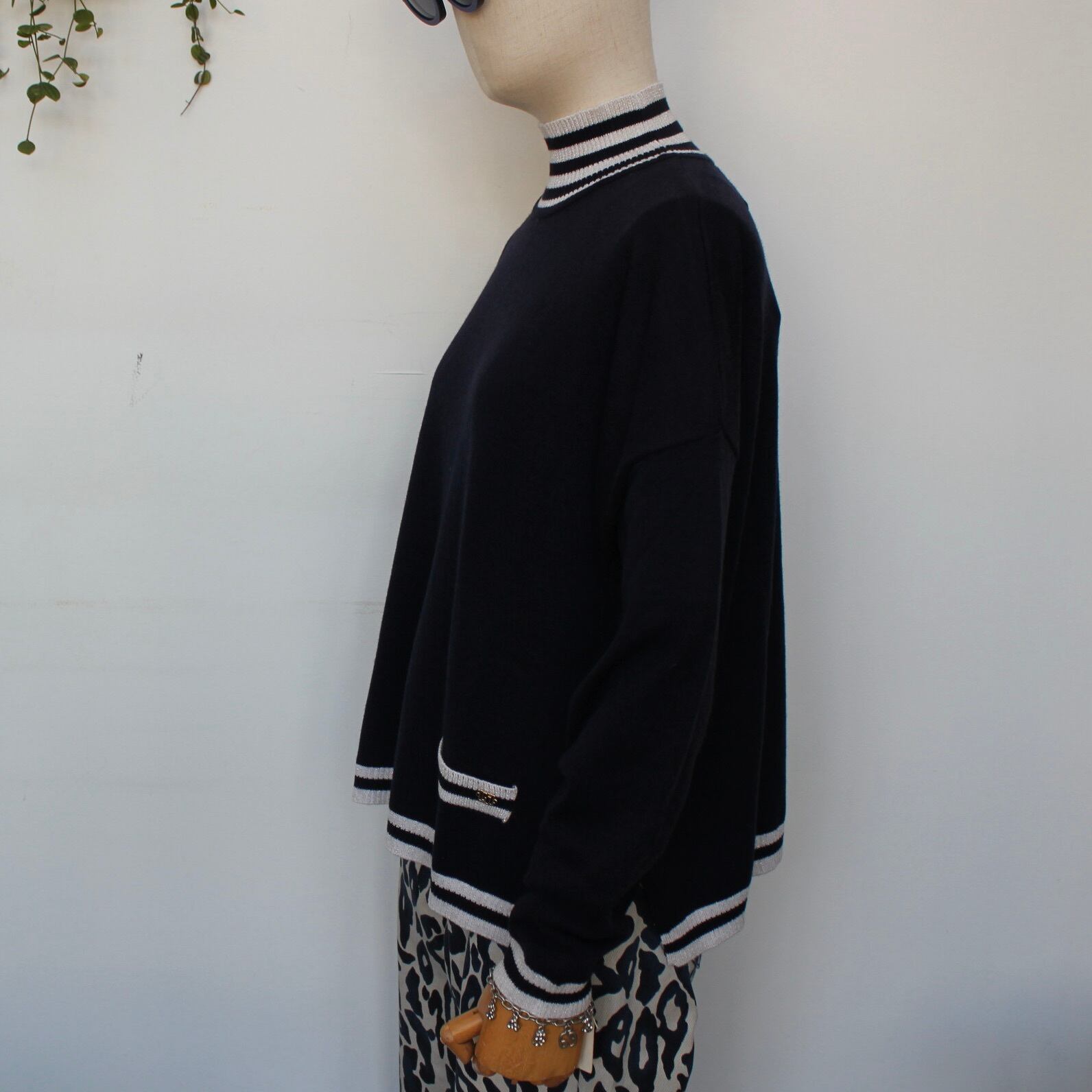 GAUDI ネイビーシルバーラメニットラインポイントオーバーセーター  ITALY: 521BD53007 ¥28,000➕tax
