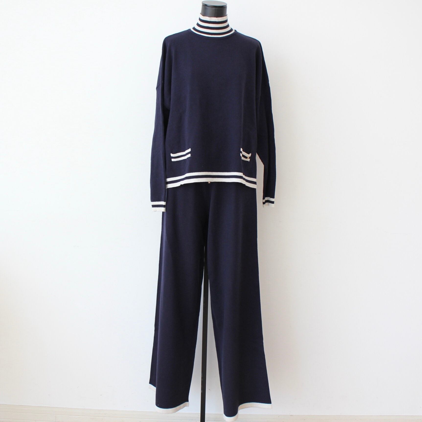 GAUDI ネイビーシルバーラメニットウエスト裾ラインポイントイージーニットパンツ ITALY:521BD23001: ¥28.000➕tax
