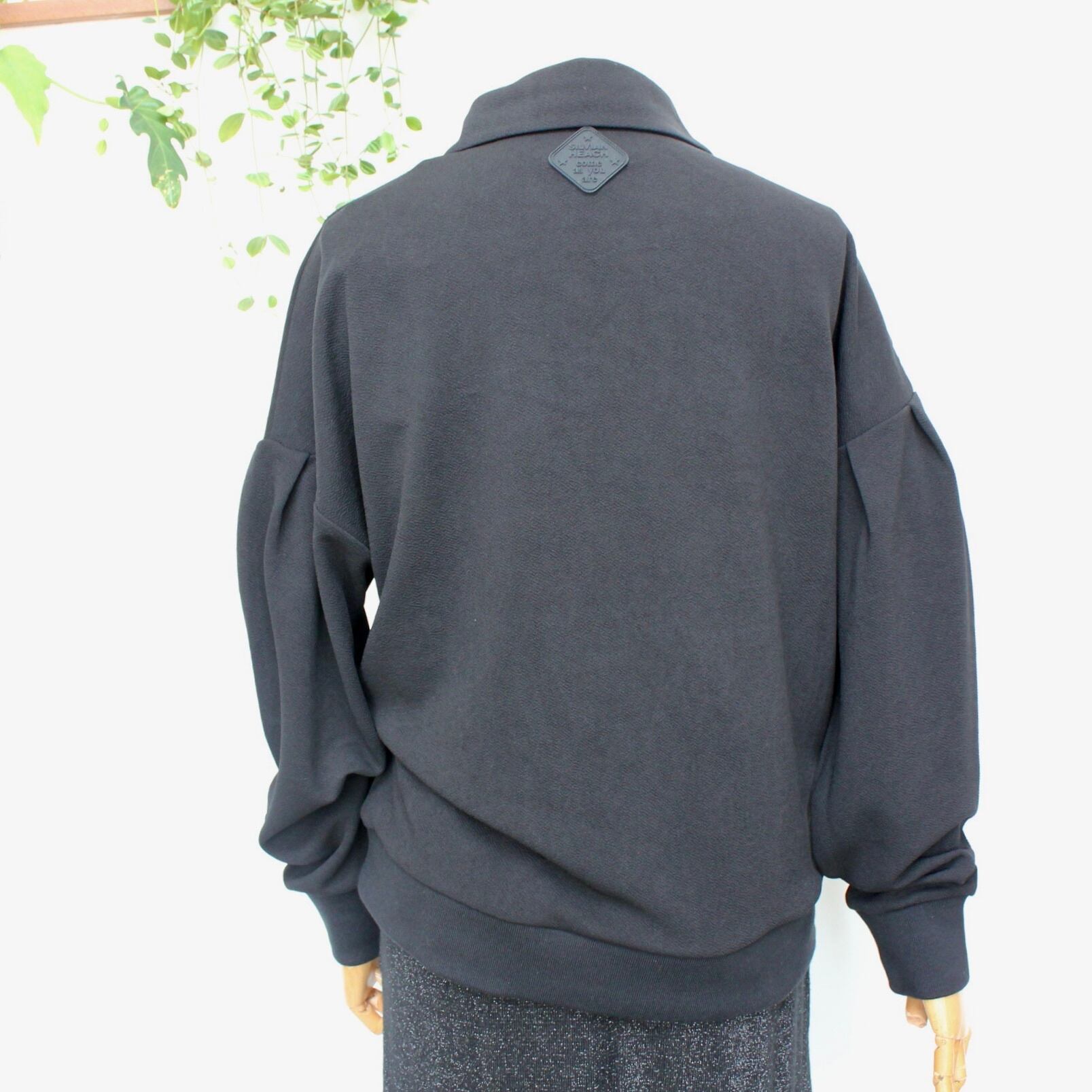 SILVIAN HEACH ブラックちりめん風スエットポロネックオーバーデザイントップス ITALY; GPA25370 ¥33,000+tax