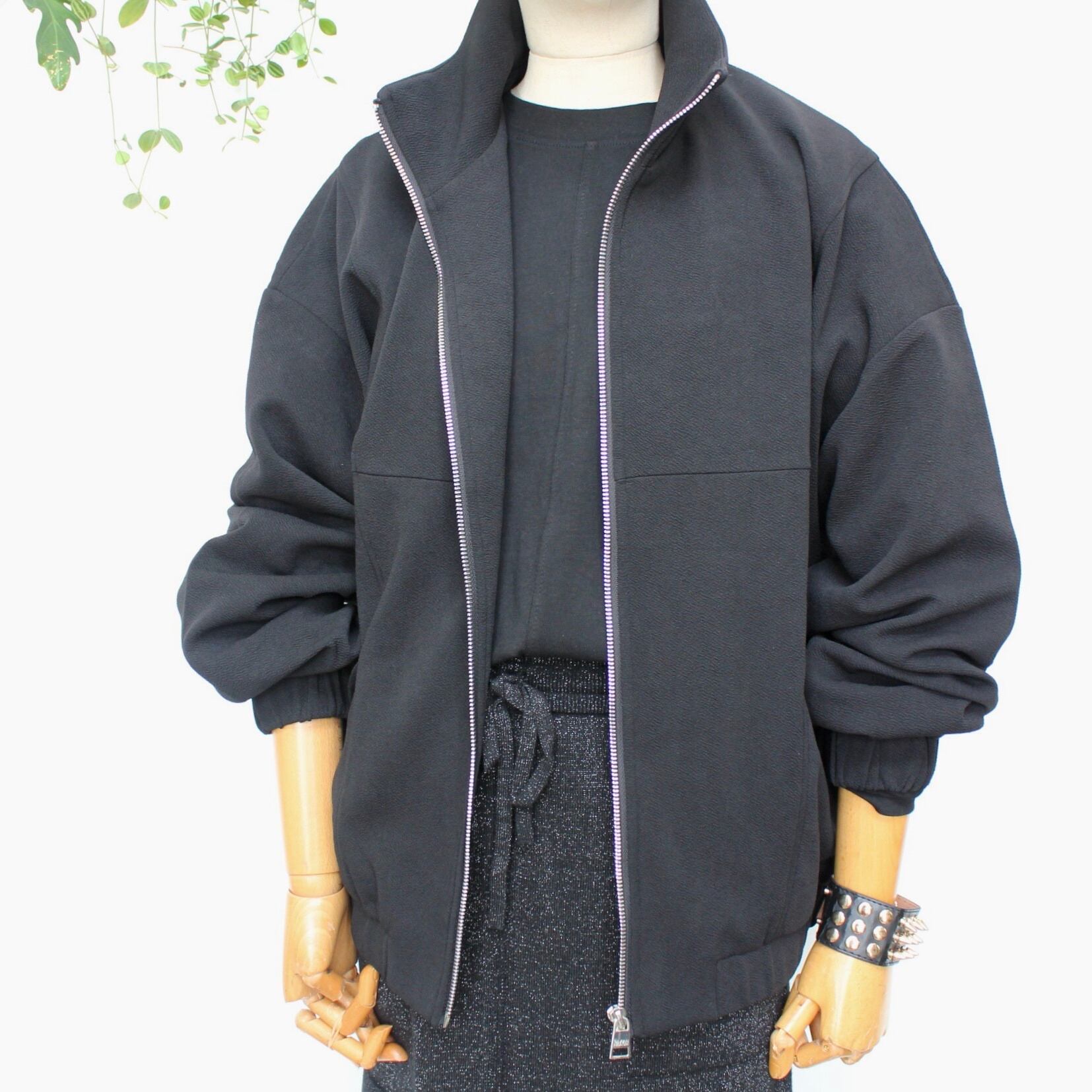 SILVIAN HEACH ブラックちりめん風スエットジップアップオーバーデザインブルゾン ITALY; GPA25371 ¥46,000+tax