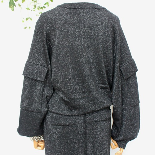 SILVIAN HEACH ポケットデザインブラックシルバーラメニットトレーナー ITALY; GPA25205 ¥39,000+tax