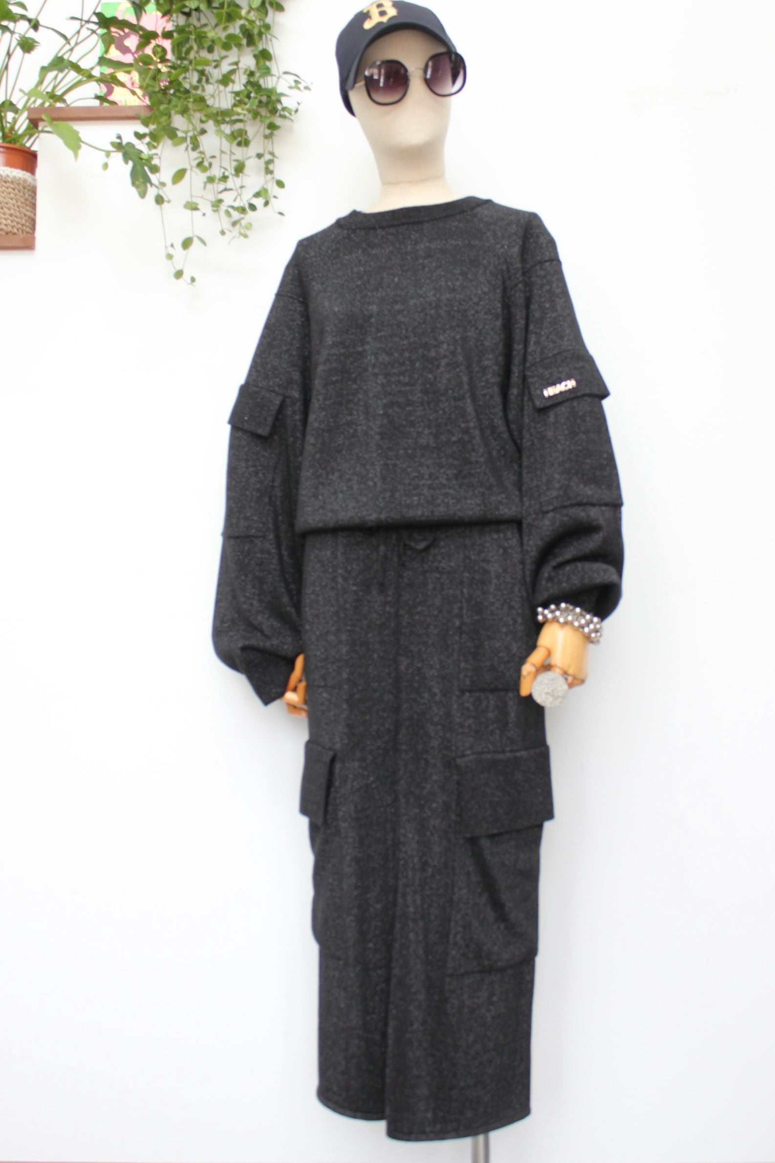 このトレーナーは、パンツやスカートとのコーディネートが楽しめ、さりげないおしゃれを演出することができます!今日は、シンプルにセットアップのスカートと合わせて、日常からお出かけまでさり気ないオシャレなラフなスタイルを楽しんでみました。大ぶりのシルバーアクセサリーやシューズで、さらに個性を引き立てる一枚として、ぜひワードローブに加えてください。