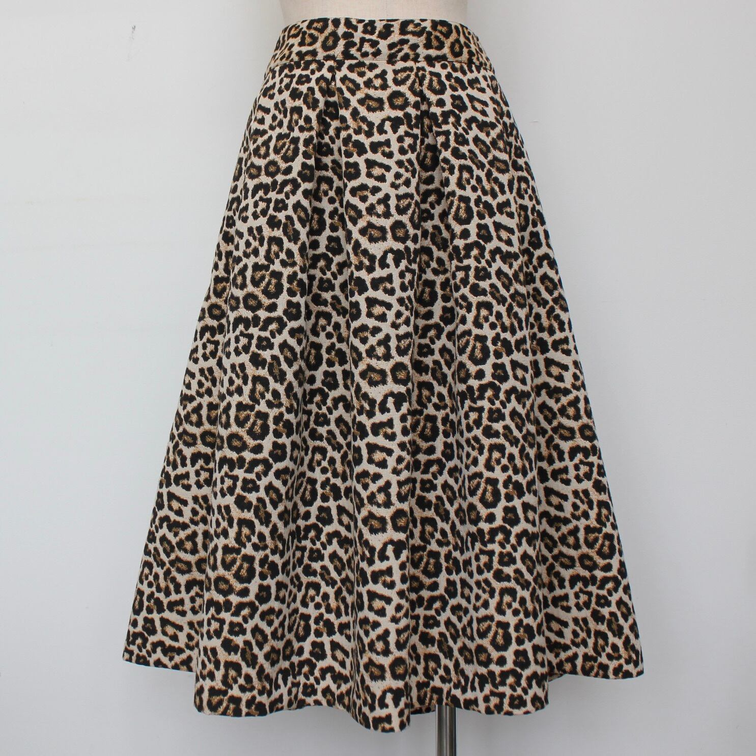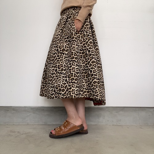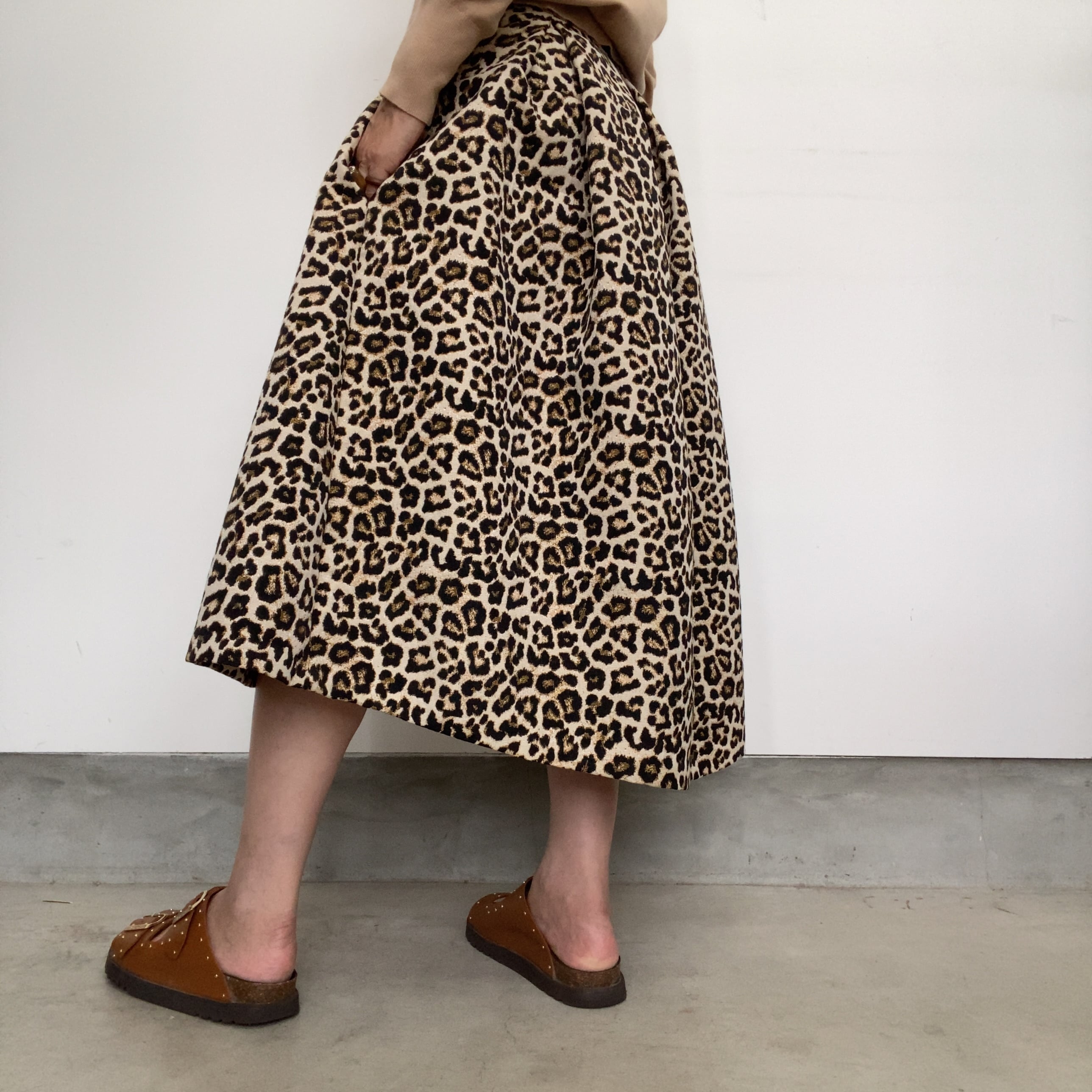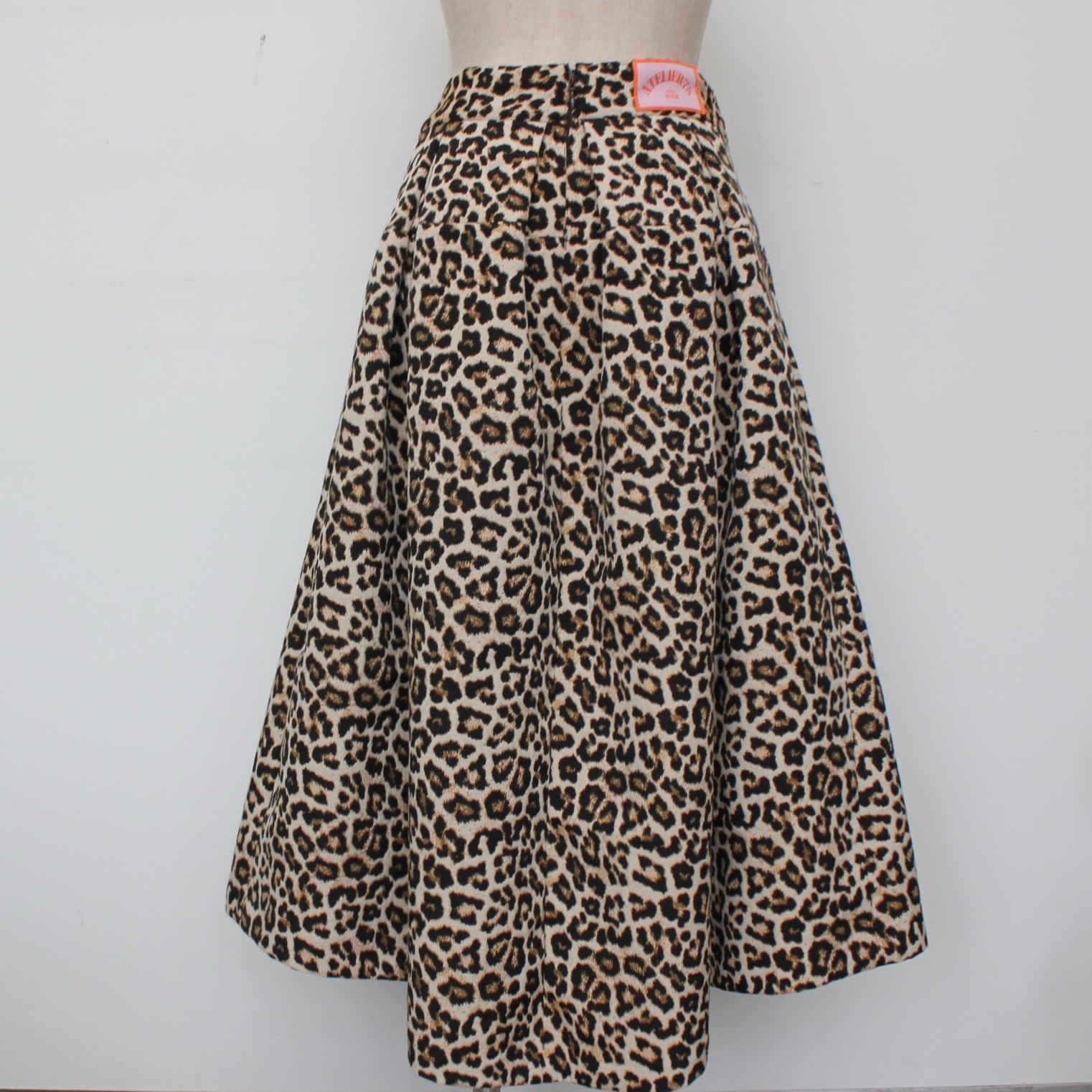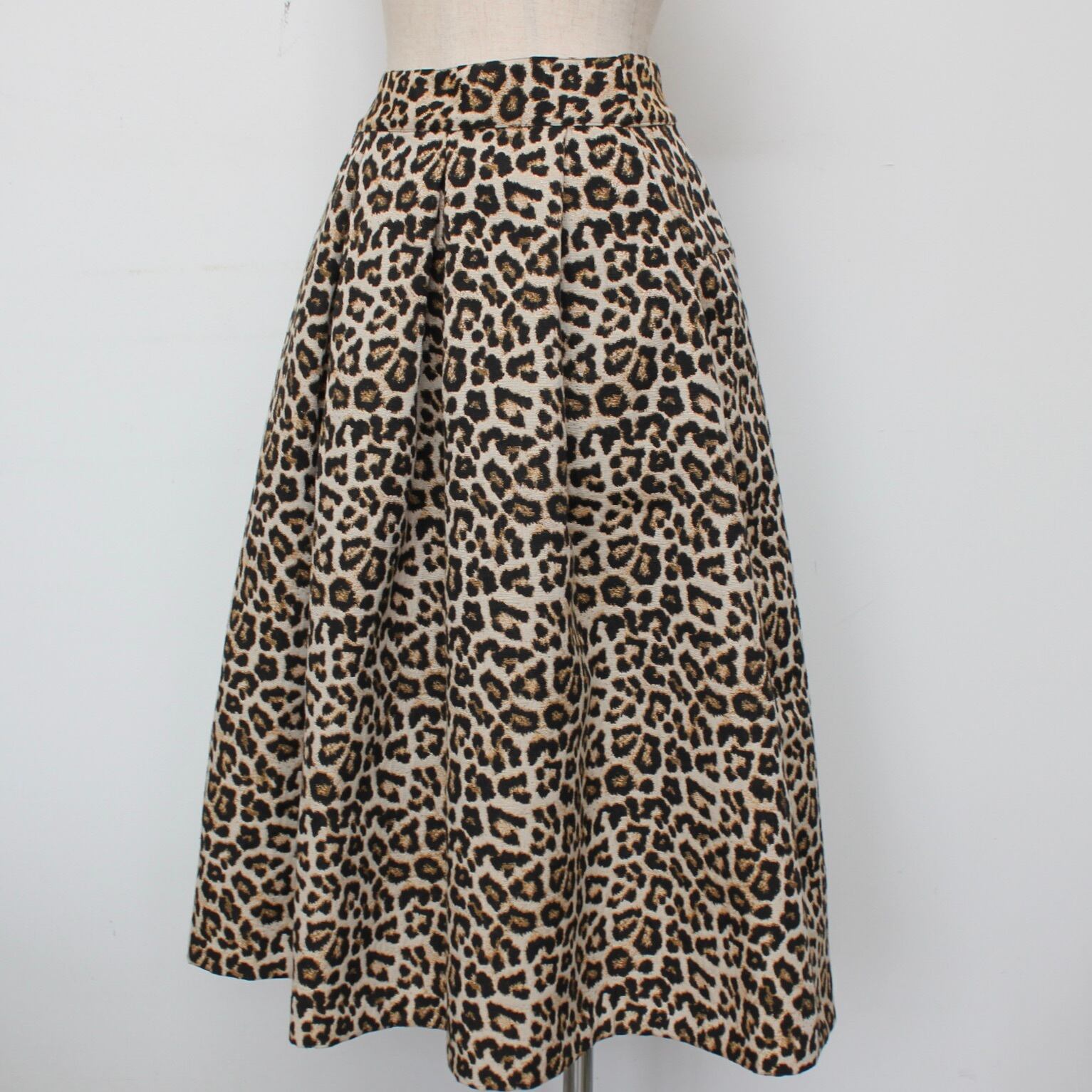 78オリジナル レオパードフランスゴブラン素材タックフレアースカート ITALY; GPA25400 ¥30.