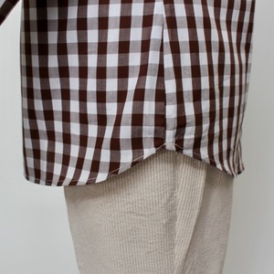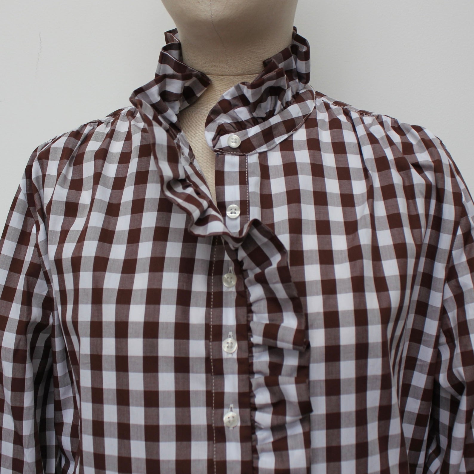 VILAGALLO ブラウン✖️ホワイトギンガムチェックフリルネックコットンブラウス SPAIN: VIL31812 ¥28,000+tax