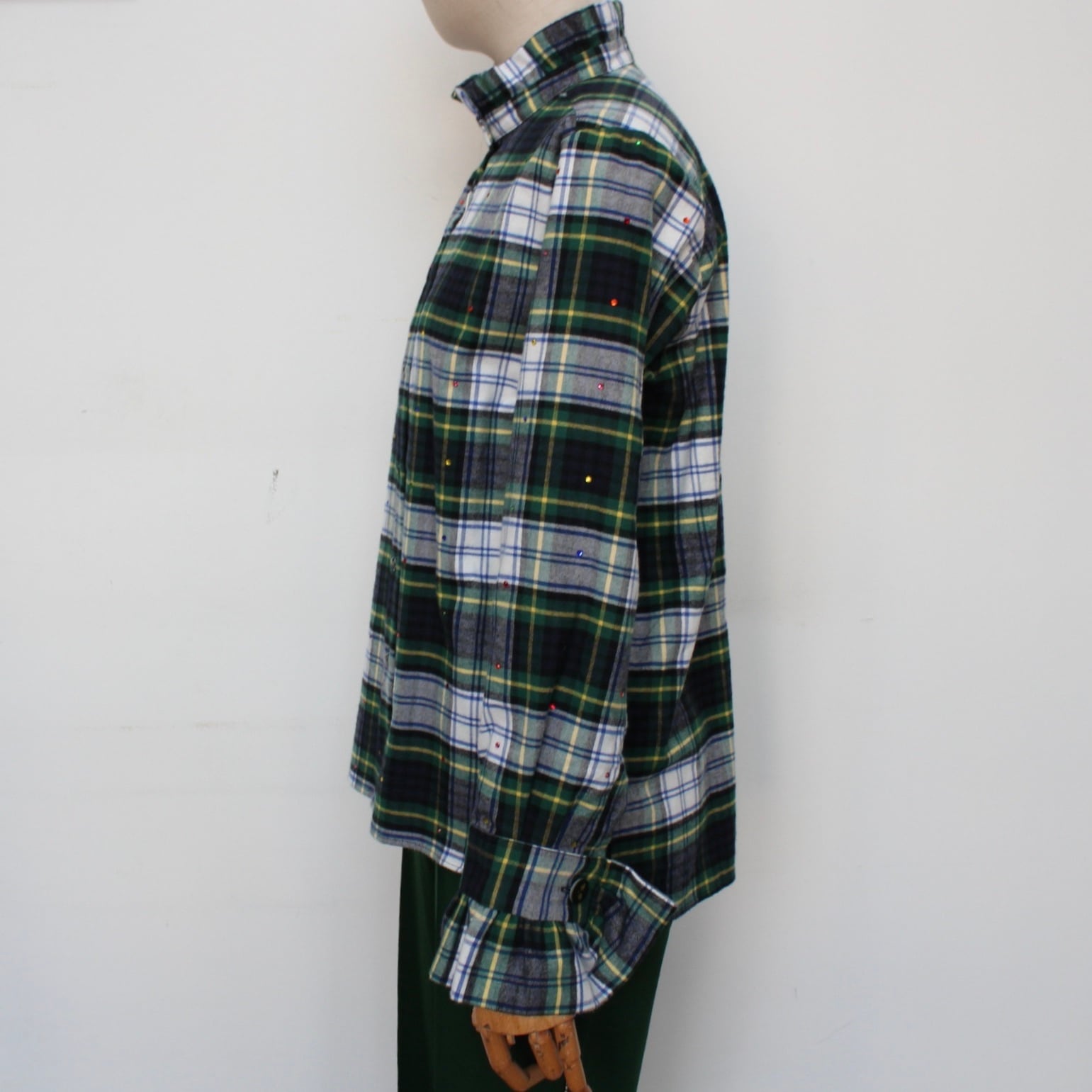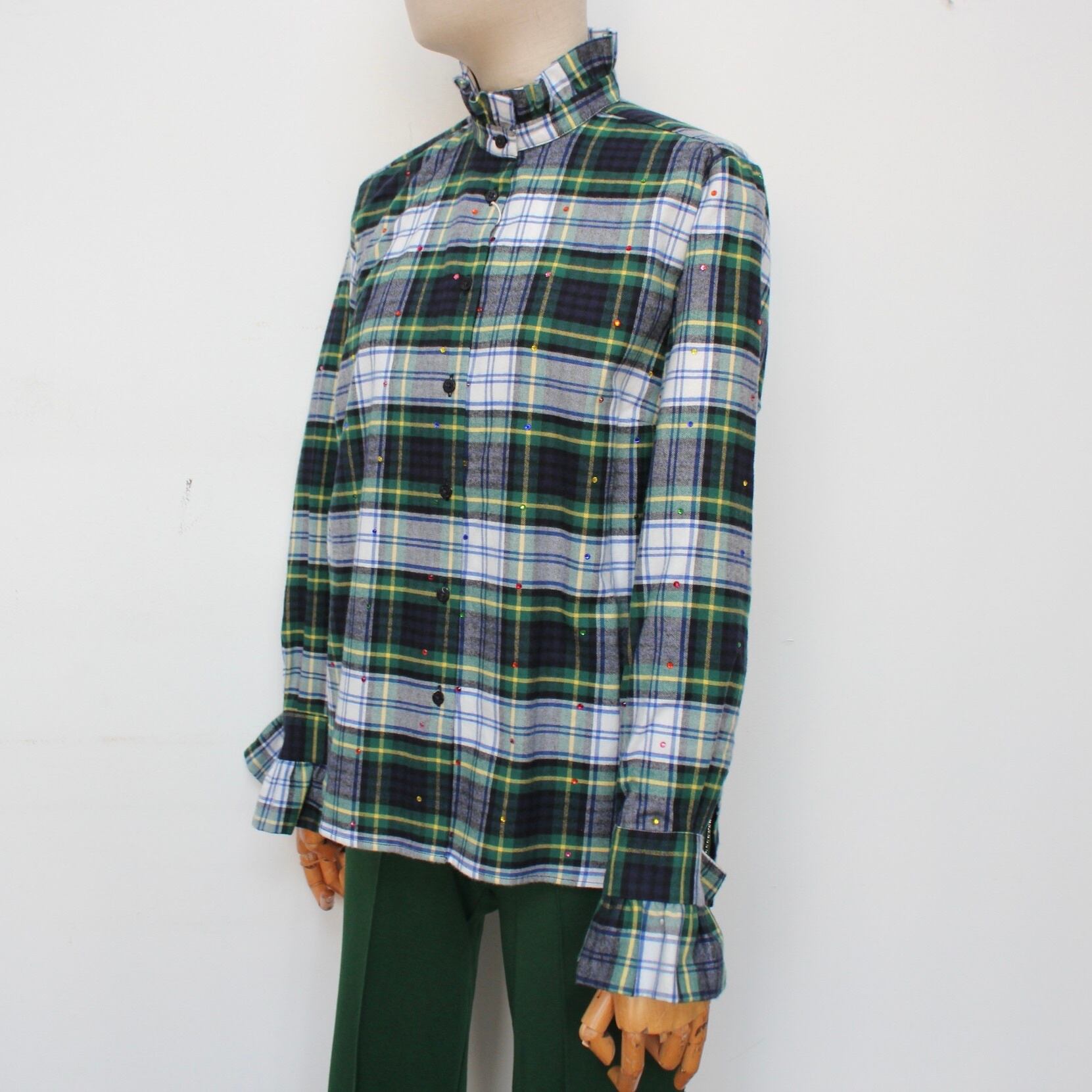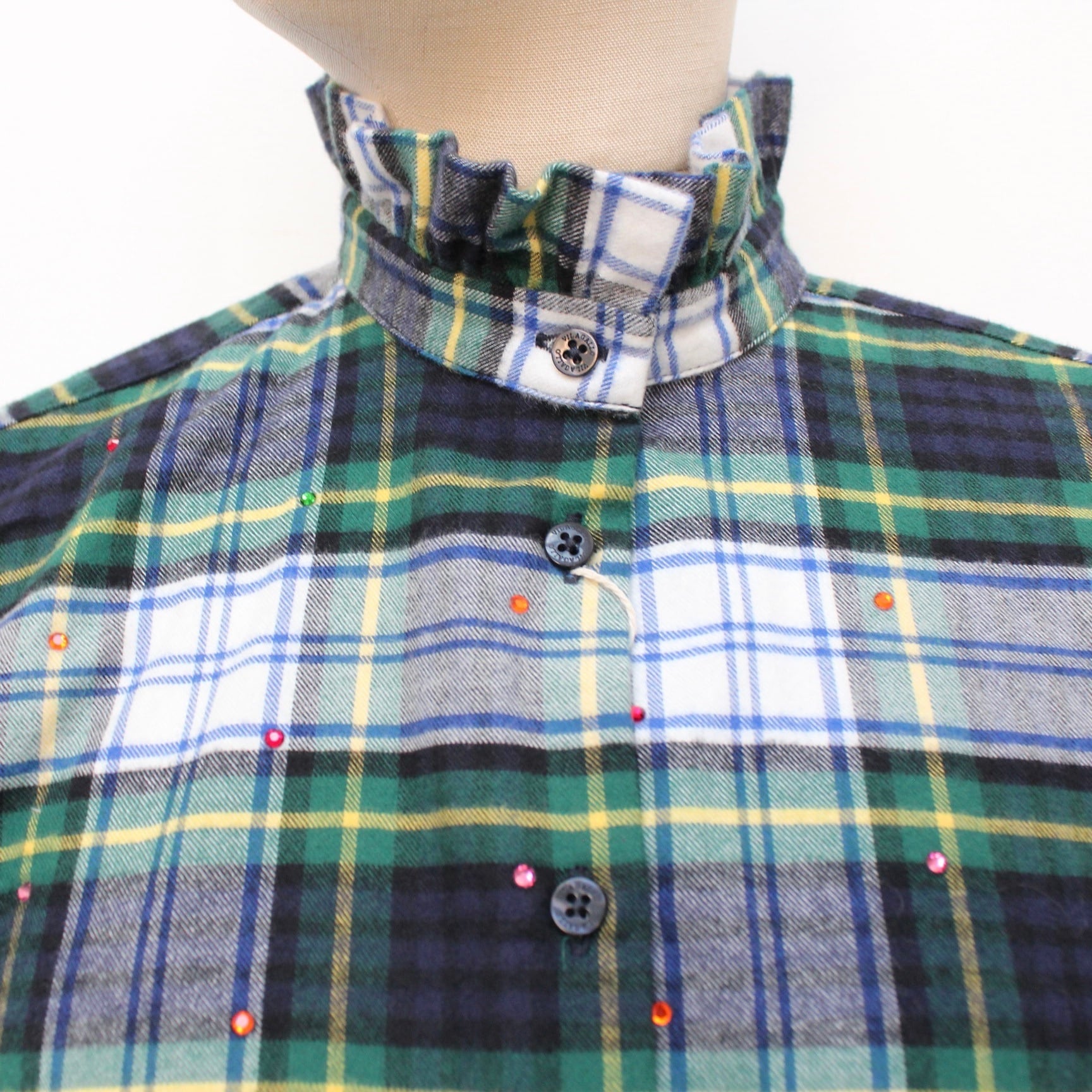VILAGALLO ストーン付きグリーンタータンチェックフリルネックネル素材ブラウス SPAIN: VIL31812 ¥28,000+tax
