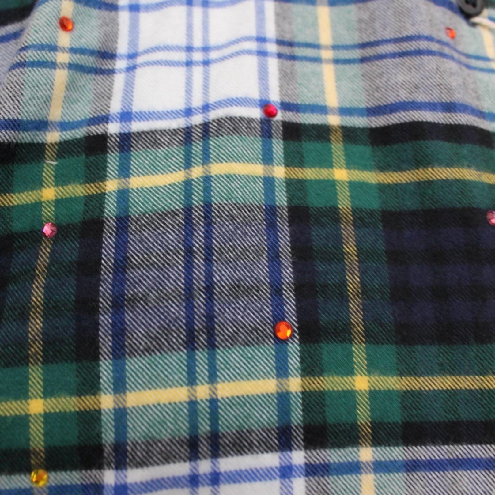 **VILAGALLO ストーン付きグリーンタータンチェックフリルネックネル素材ブラウスは、洗練された印象を与える魅力的なデザインが特徴です!深みのあるグリーンタータンチェックに、華やかなマルチカラーの小さなストーンと、可愛い蜂模様のボタンが施され、さりげないアクセントとしてあなたのスタイルを引き立てます♪ 柔らかなネル素材を使用しており、肌触りも良く、一日中暖かく快適に過ごせる着心地を実現しています。フリルネックと袖口が可愛らしさをプラスし、女性らしさを引き立てる一着です。**