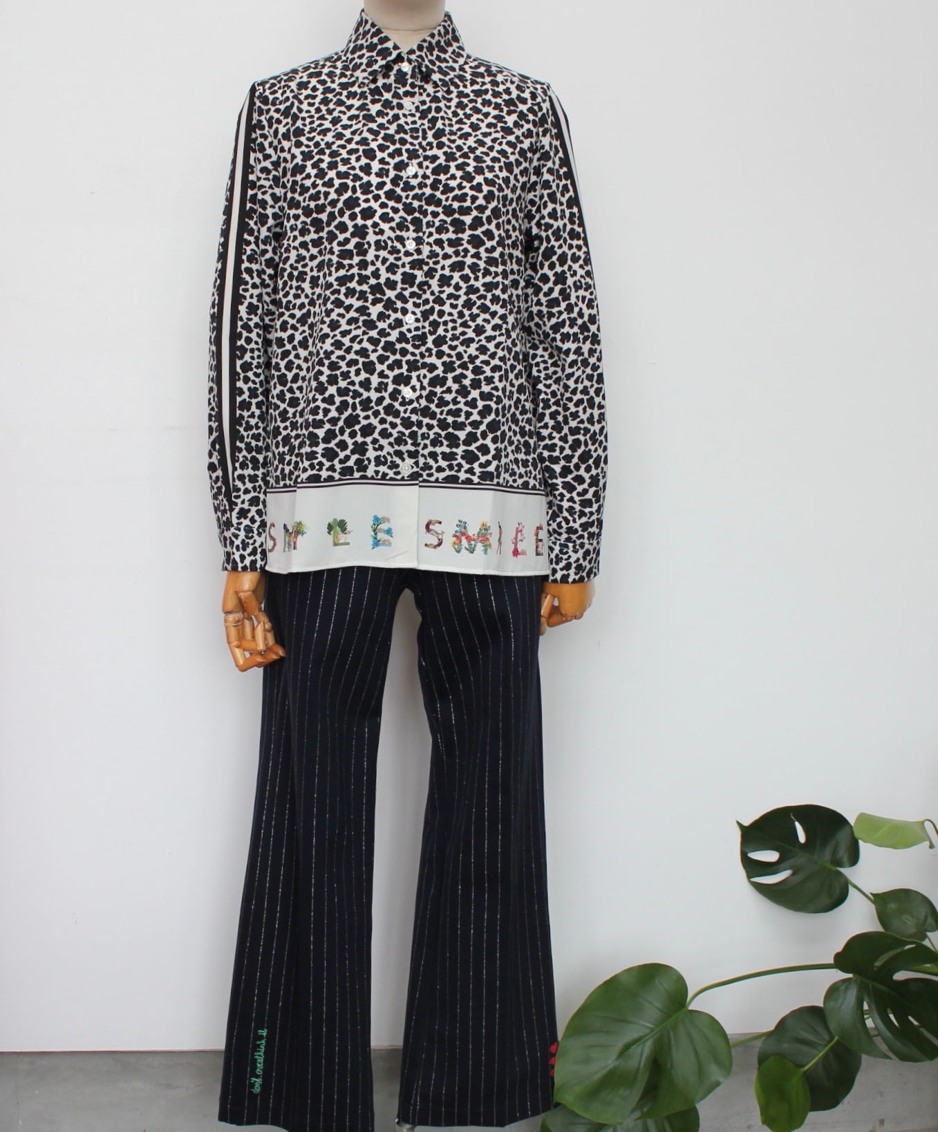 VILAGALLO ネイビー✖️ホワイトレオパードサイドラインバックプリントポイントシャツ SPAIN: VIL32997 ¥28,000+tax