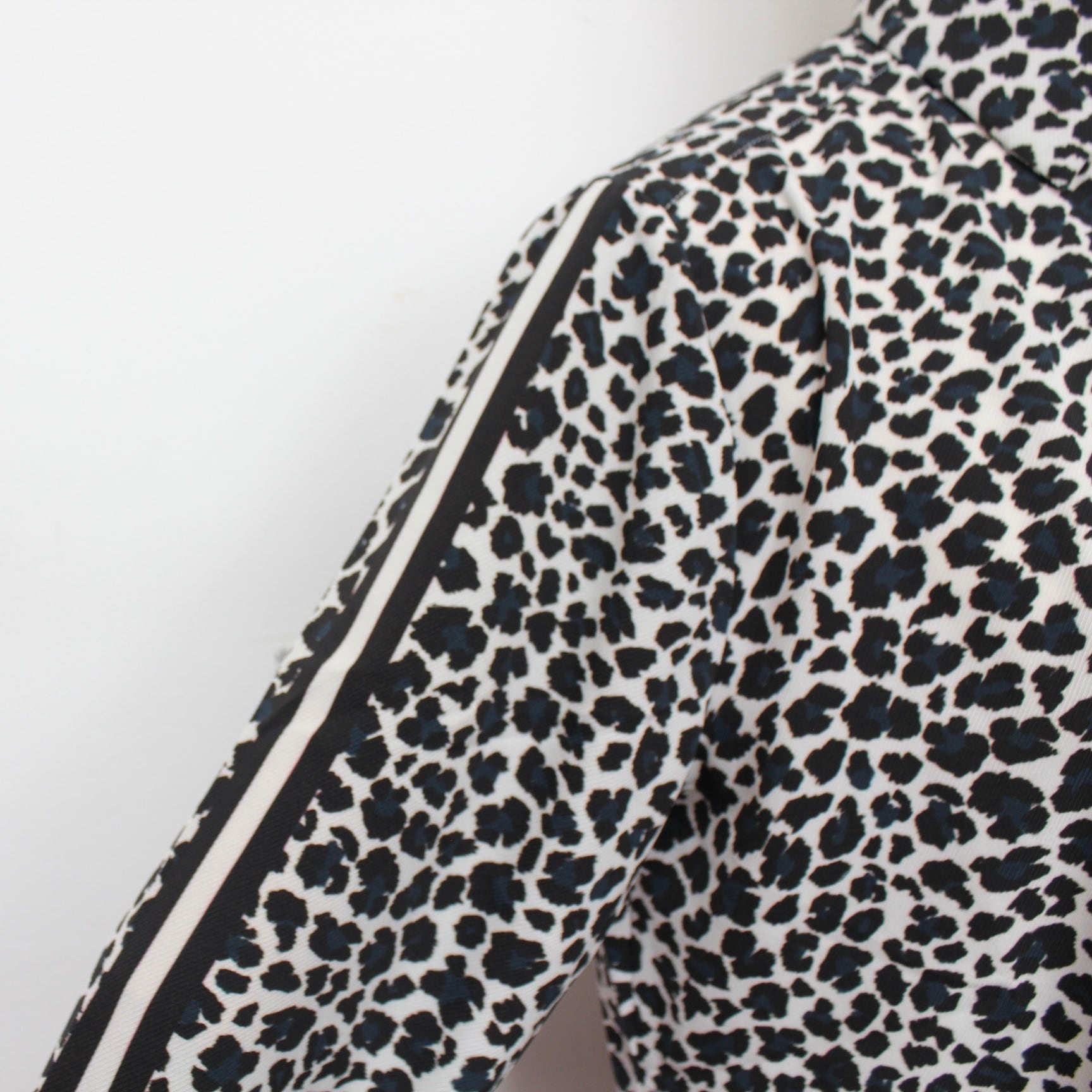 **VILAGALLO ネイビー✖️ホワイトレオパードサイドラインバックプリントポイントシャツは、個性的でありながらスタイリッシュな印象を与える一着です!ネイビーとホワイトの組み合わせが洗練された雰囲気を醸し出し、ゆったりしたシルエットで、スリーブサイドラインやバックプリントのレオパードデザインがさりげなくアクセントとなっています♪ 軽やかなストレッチ素材は、肌触りも良く滑らかな着心地で、心地良オールシーズン通してご着用いただけます。**