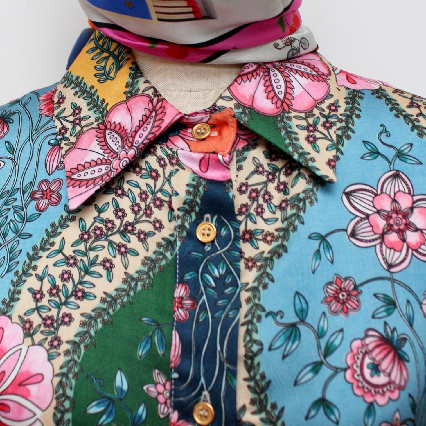 VILAGALLO マルチカラーボタニカルプリントポリエステルマキシワンピース SPAIN: VIL33006 ¥43,000+tax