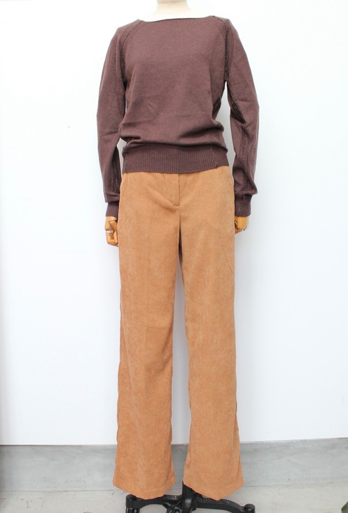 このセーターは、パンツやスカート、どちらにも合わせやすく、様々なスタイルをお楽しみいただけます!今日は、キャメルコーディロイパンツと合わせてシンプルな大人かジュルコーディネートに仕上げてみましたが、ボトムを変えればスタイリッシュにもエレガントにもアレンジ可能です。デイリーからフォーマルなシーンまで、大人の魅力を存分に引き出す一着で、あなたのワードローブの主役になること間違いなしです。