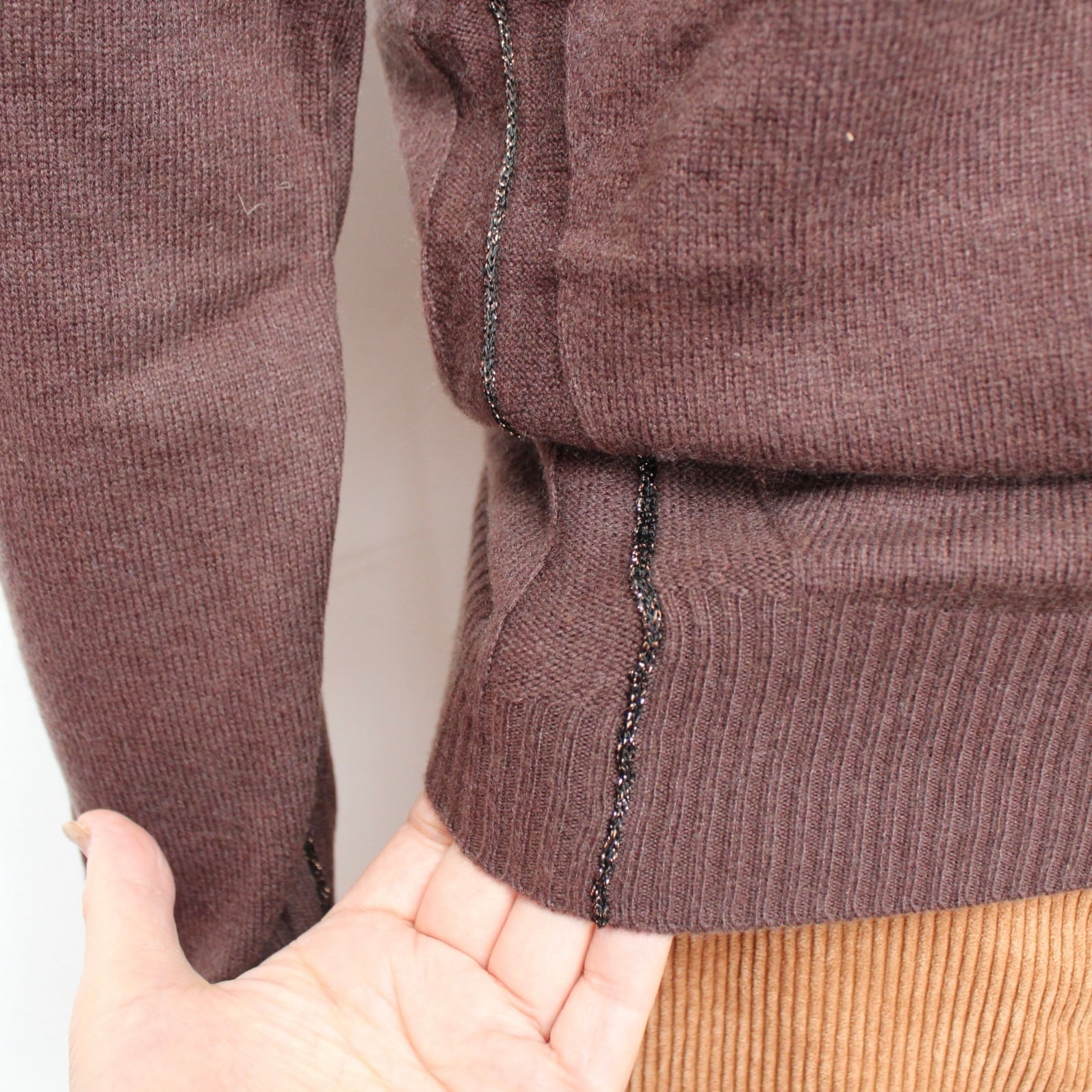 SILVIAN HEACH ブラウンカシミヤ入りラメラインポイントセーター ITALY; GPA25241 ¥29,000+tax