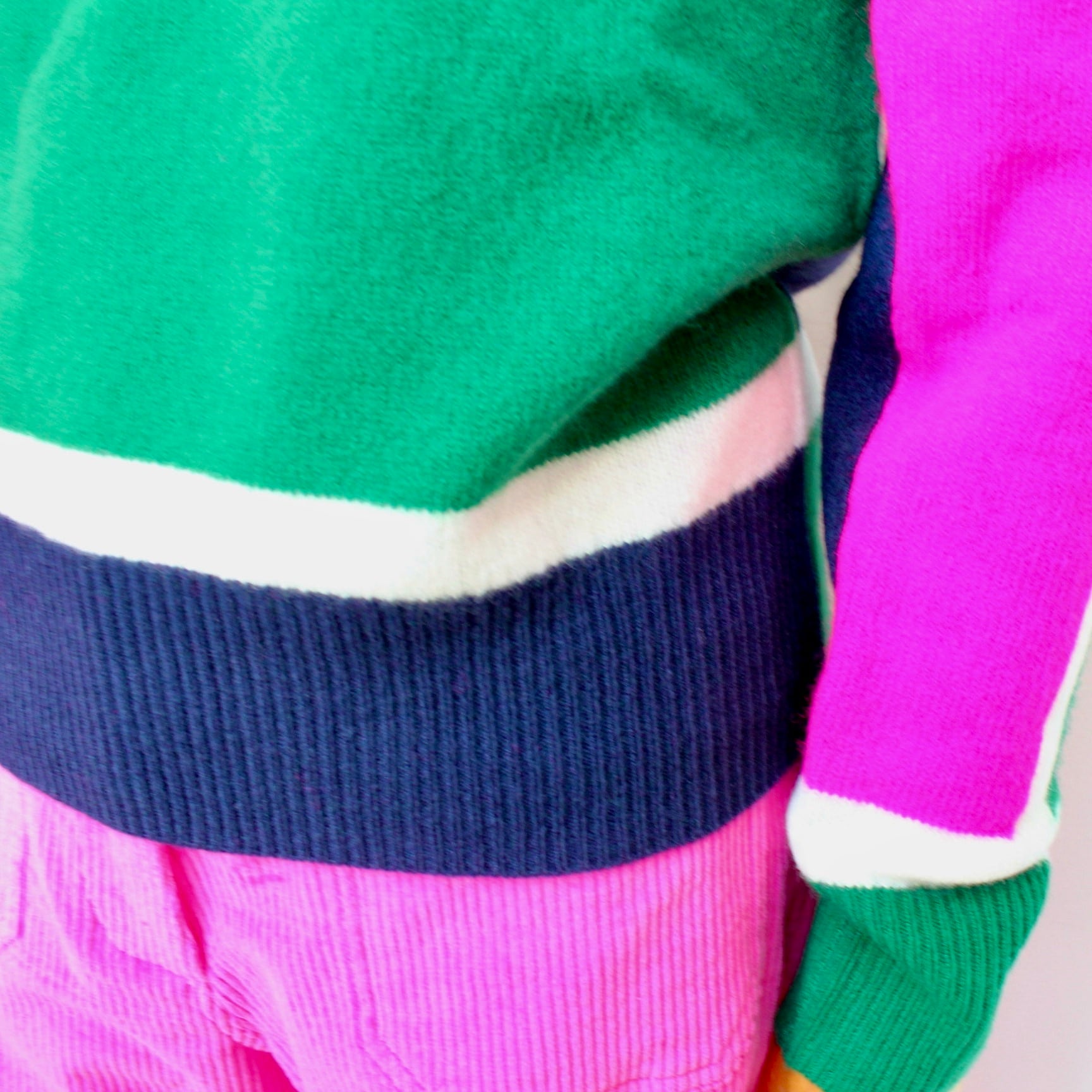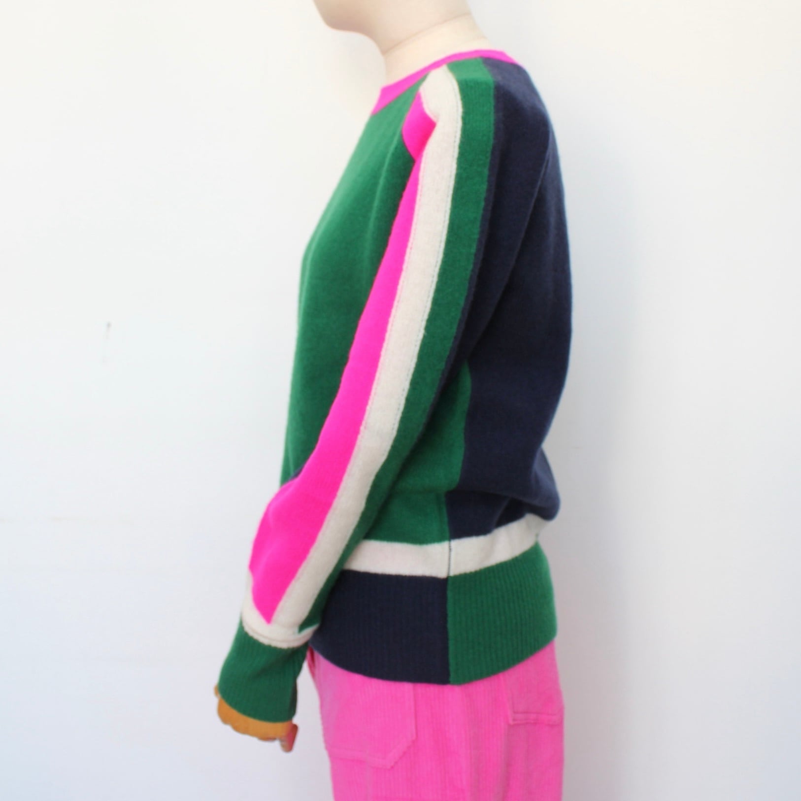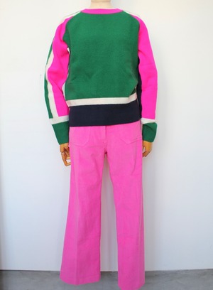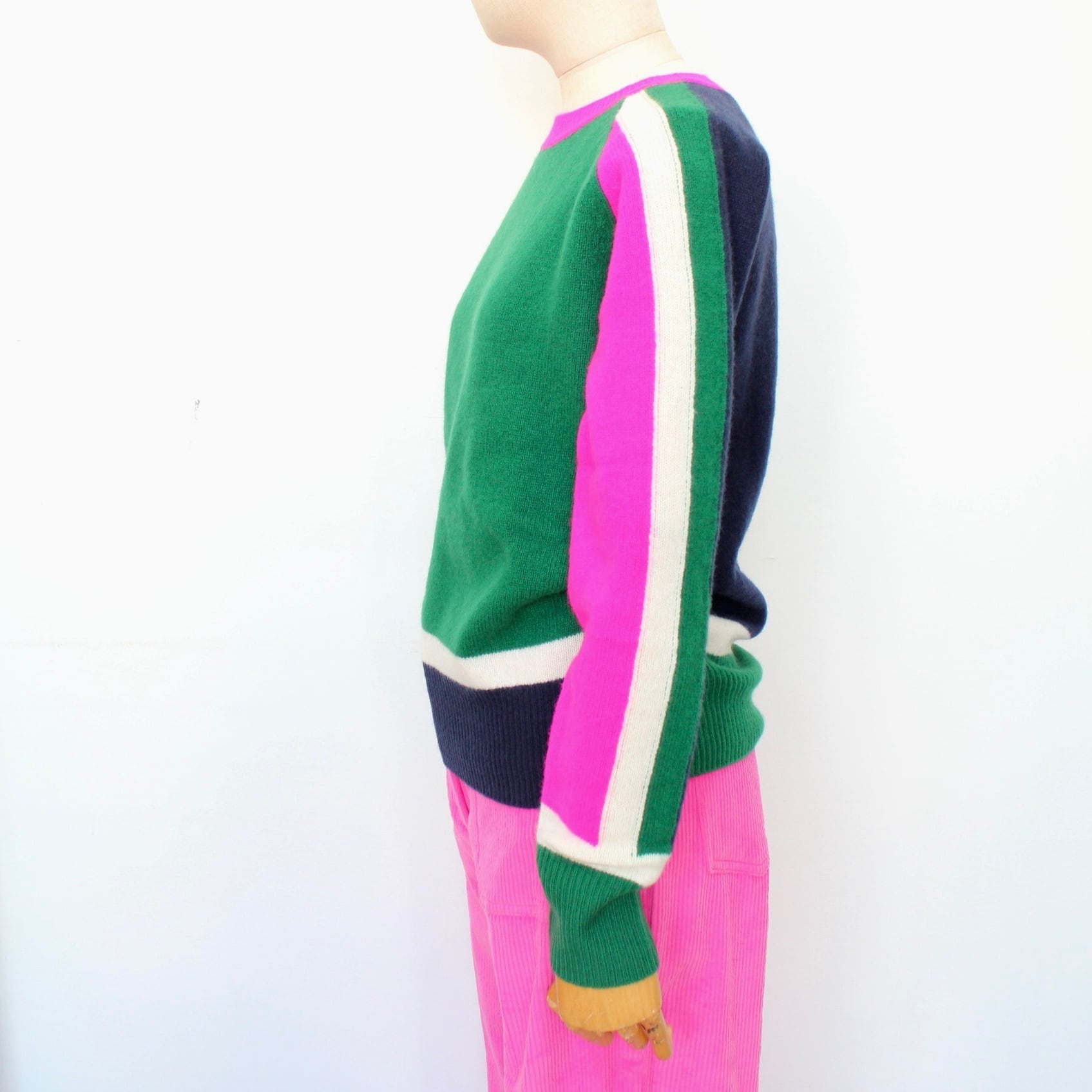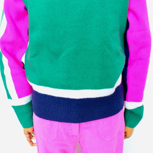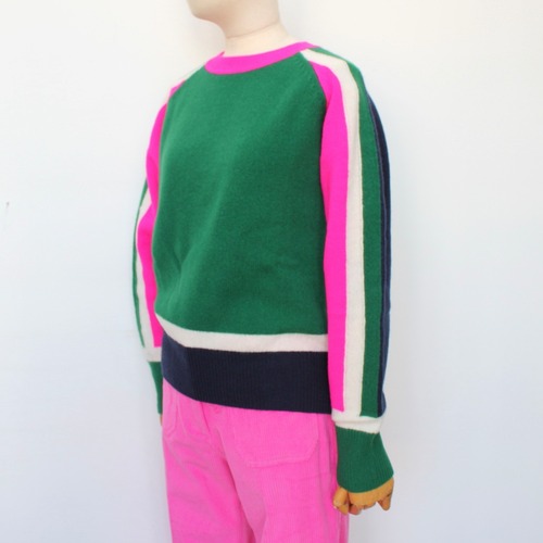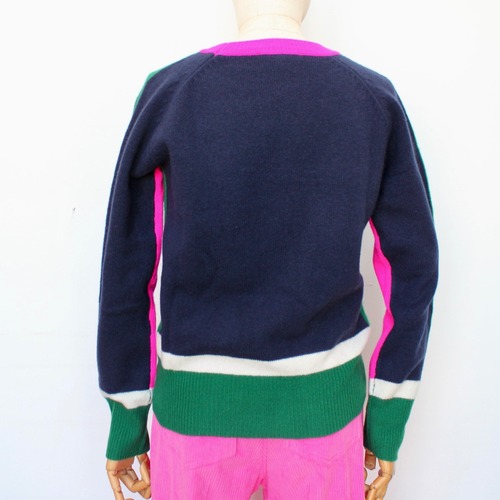VILAGALLO グリーン✖️ネイビー切替+ピンクラインクルーネックウールセーターSPAIN: VIL32740 ¥38,000+tax