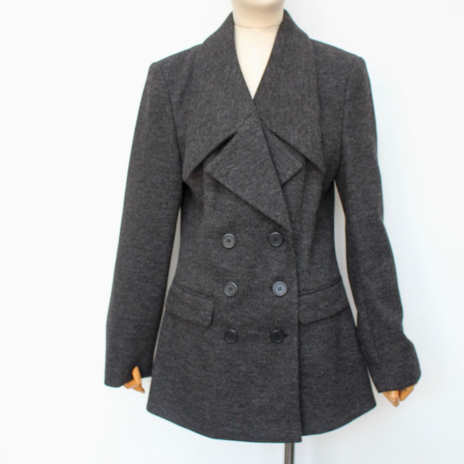 **SILVIAN HEACH バリモアテーラード襟ダークグレーミックスウールSラインハーフコートは、シンプルながら上品さと洗練されたデザインがスタイリッシュなアイテムです!深いダークグレーのミックスウール生地が、スタイリッシュに着こなせ、テーラード襟のラインがシャープでエレガントな印象を与えます♪ イタリア製の高品質なウール素材を使用しており、保温性も高く、着心地も快適。Sラインのシルエットが美しいスタイルを演出し、さまざまなコーディネートにマッチします。**