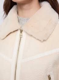 **GAUDI オフホワイトシープスキンエコボアジップアップハーフコートは、上品で優しいオフホワイトカラーとエコボア素材の絶妙なコンビネーションが魅力の注目のアウターです!イタリア製の高品質なシープスキンライクなエコボアを使用しており、しっとりとした肌触りと抜群の暖かさを提供します♪ ジップアップデザインにより、スタイリングのアレンジが簡単で、カジュアルにもフォーマルにも幅広くコーデできます。軽やかな着心地ながら、しっかりとした保温性を兼ね備えており、これからの季節にぴったりの一着です。**