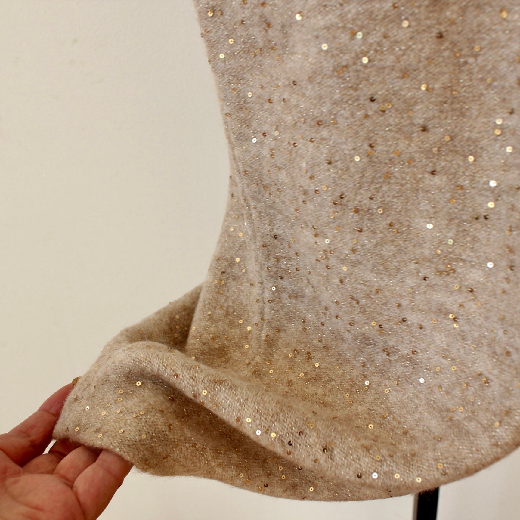 **GAUDI ベージュニット✖️ゴールドスパンコール暖かスカートは、上品なベージュカラーと輝くゴールドスパンコールが贅沢に施された特別なアイテムです!イタリア製の高品質なニット素材を使用し、最高の肌触りと心地良い暖かさと柔らかさを兼ね備えています♪ シンプルなデザインはシルエットを美しく引き立て、コーディネートに華やかさをプラスします。カジュアルなシーンから特別な場面まで幅広く対応できるので、日常使いはもちろん、パーティーシーンでも活躍間違いなしの一着です。**