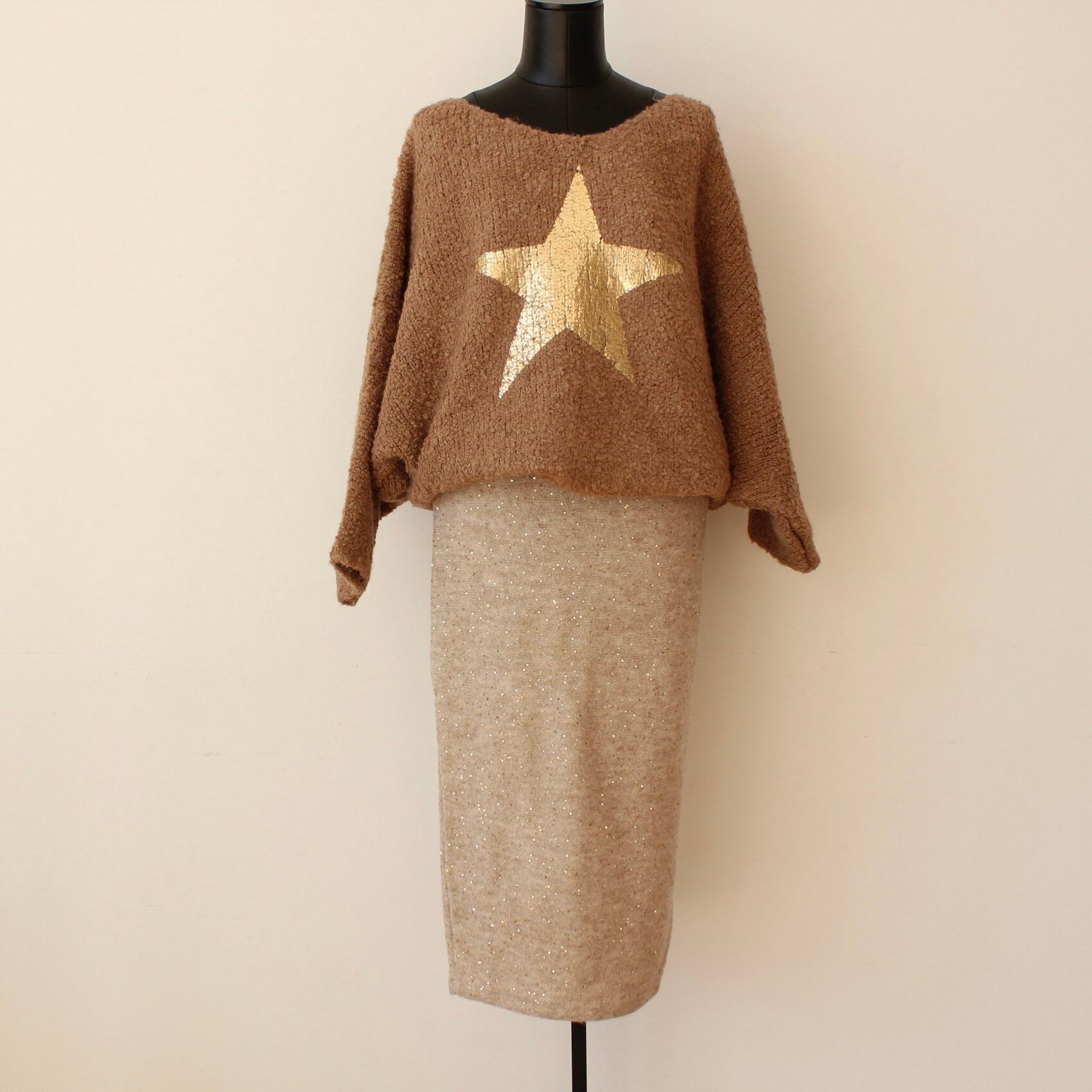 GAUDI ベージュニット✖️ゴールドスパンコールニット暖かスカート ITALY: 521FD23002 ¥26,000➕tax