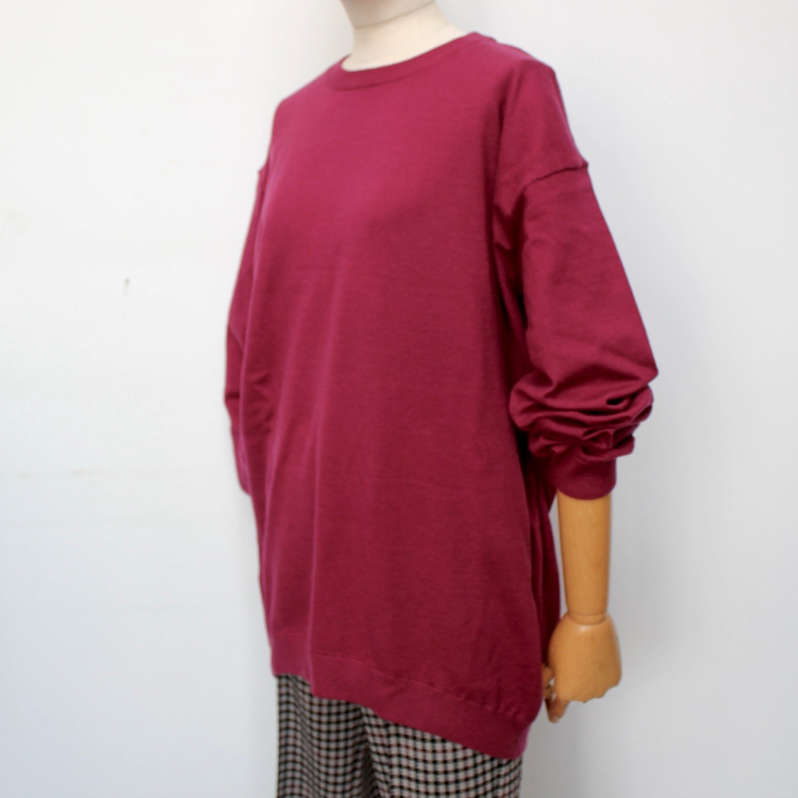 **SILVIAN HEACH ボルドークルーネックオーバーサイズニットトップスは、ローズカラー系のボルドーカラーが魅力的で、人気のゆったりとしたオーバーサイズデザインが魅力のアイテムです!イタリア製の高品質な素材を使用しており、柔らかさと温かさを兼ね備えております♪ ルーズなシルエットは、インにもオーバーでも、シンプルながらもトレンド感を与え、カジュアルなコーディネートからおしゃれなスタイリングまで幅広く活躍します。**