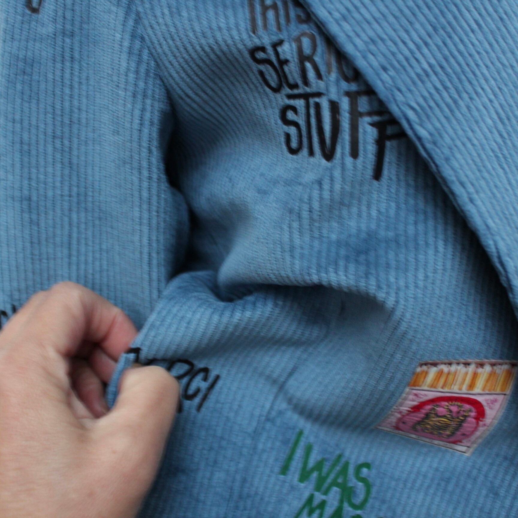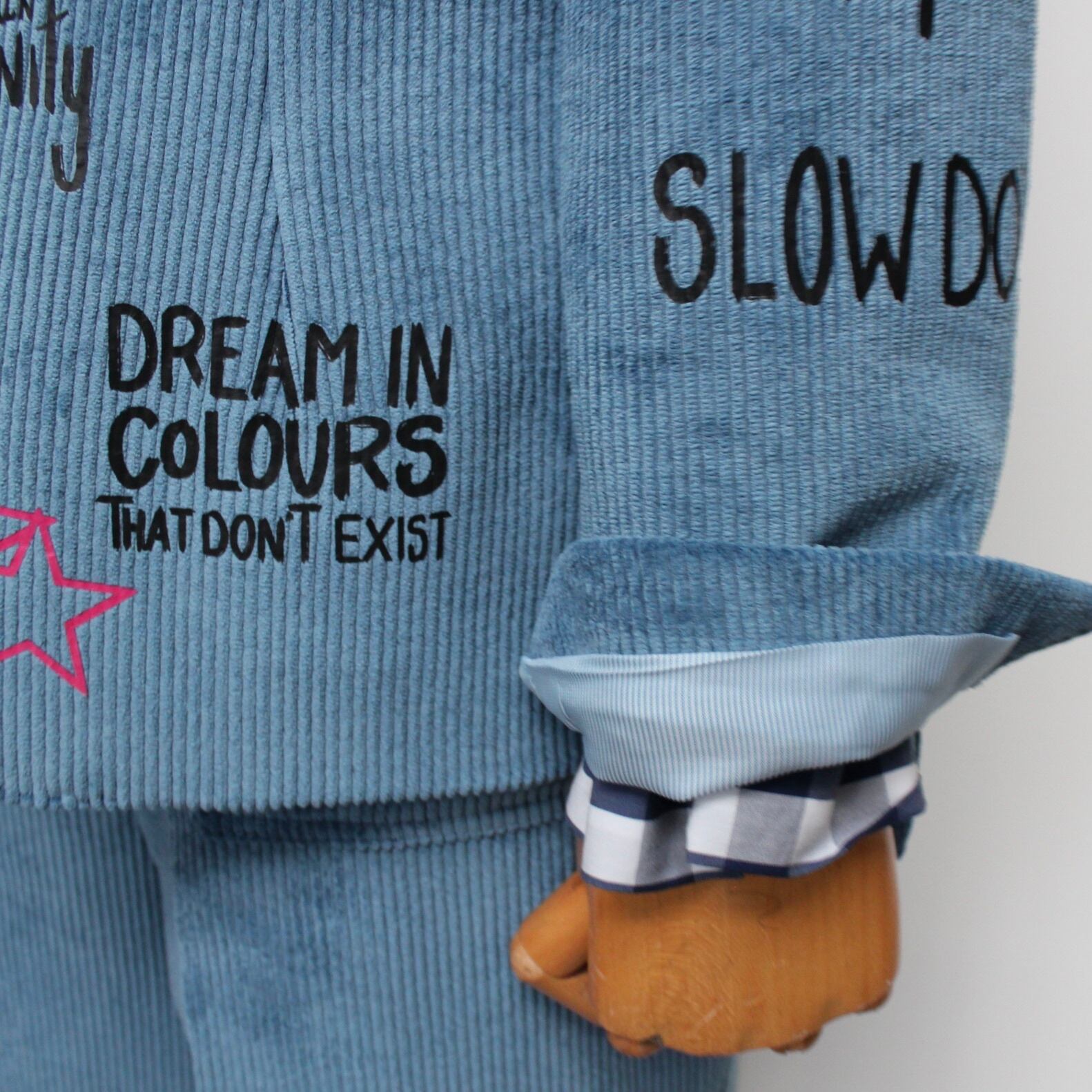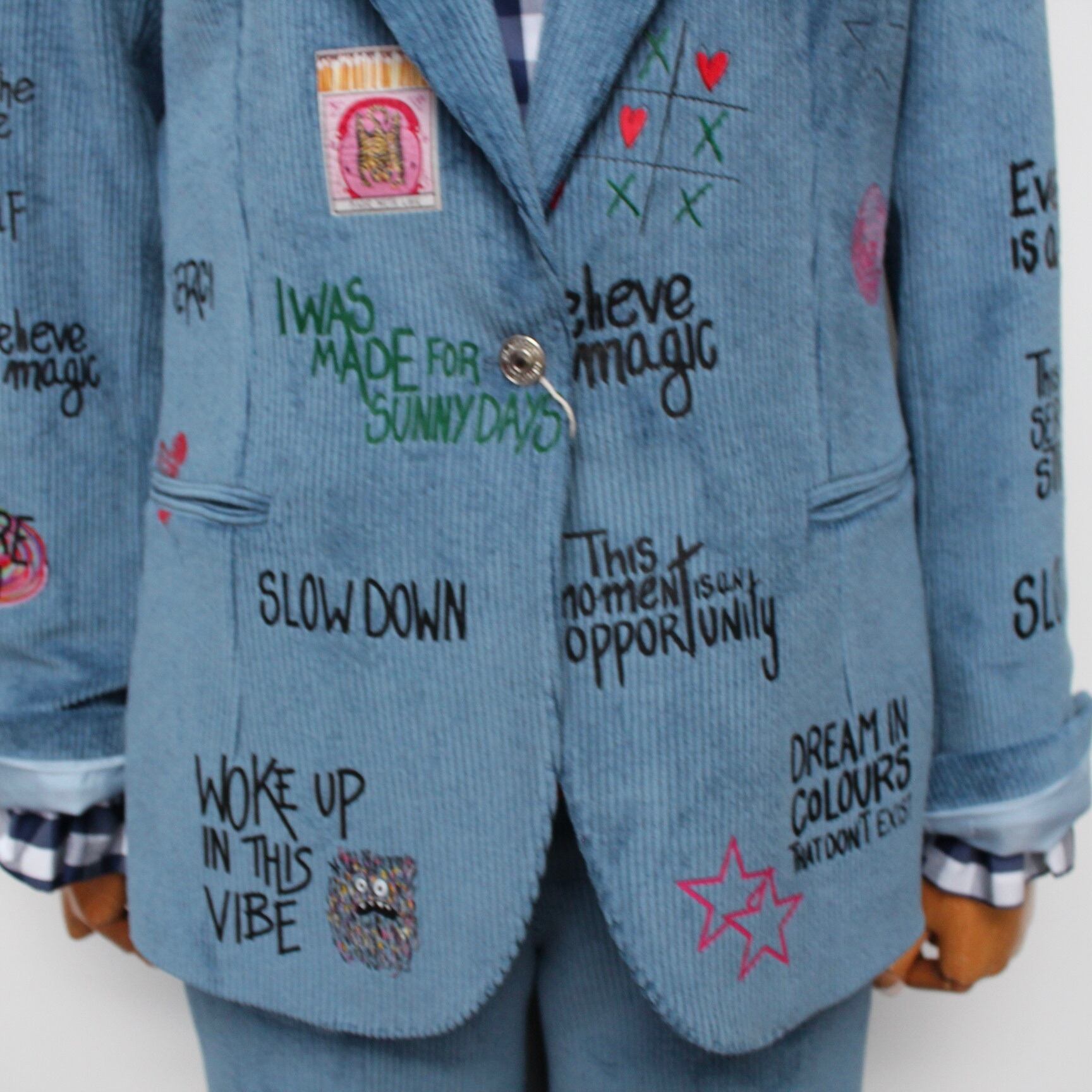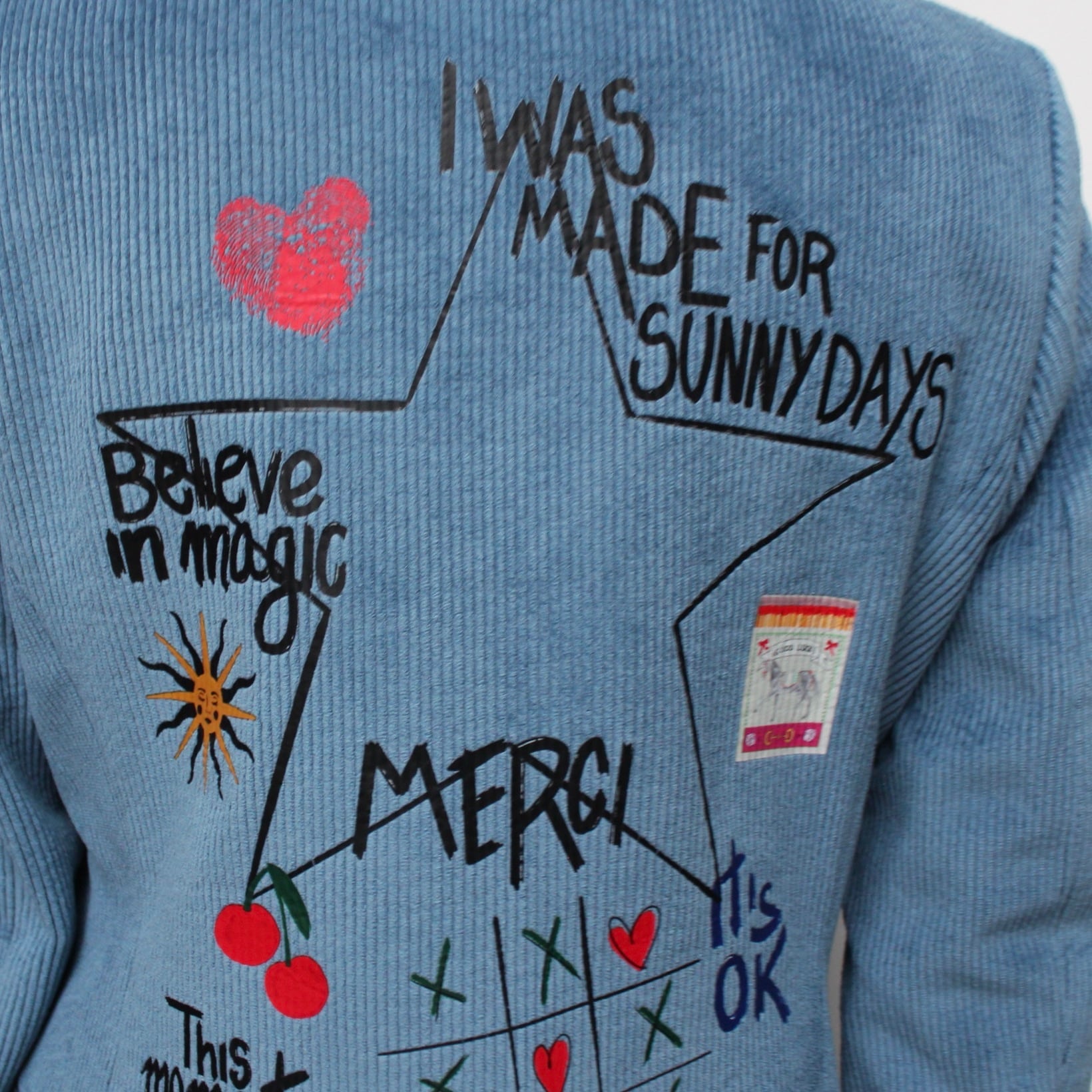**VILAGALLO アズーロペイントデザインストレッチコーデュロイジャケットは、魅力的なアズーロの色合いとしなやかなストレッチコーデュロイ素材が心地良い着心地に、オシャレで可愛いペイントが高級感あふれるジャケットです!スペイン製の厳選された素材を使用しており、快適な着心地を極めながら、カジュアルでありつつも洗練された印象を与えます♪ 裏地は、ブルー✖️ホワイトのストライプ柄でさり気なくテンションup!このジャケットを羽織ることで、オシャレを満喫し、多様なシーンでの着用が可能で、デイリースタイルから特別なイベントまで幅広く活躍することでしょう。**