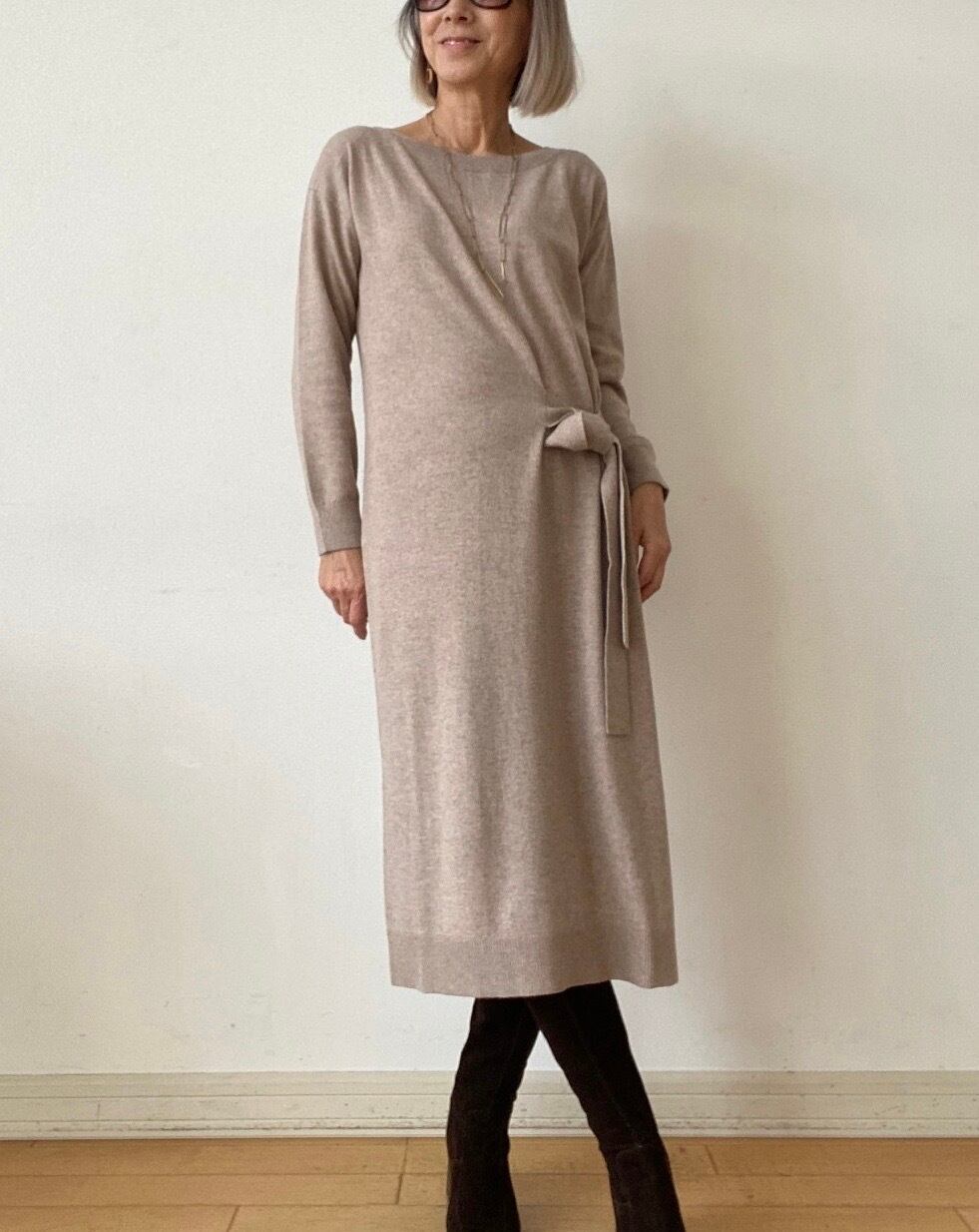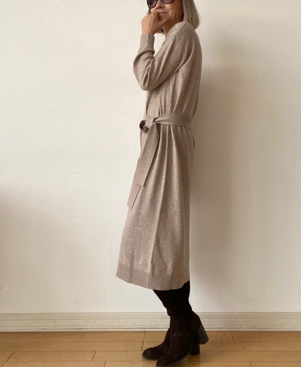 GAUDI ウールカシミヤ混暖かベージュウエストポイントニットワンピース ITALY:521FD13001 ¥36,000➕tax
