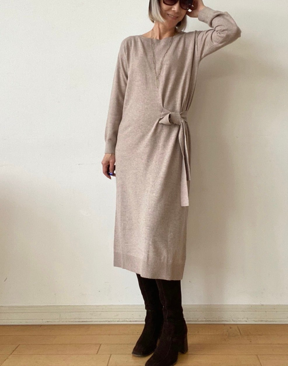 このワンピースは、さまざまなアクセサリーやアウターと組み合わせることで、カジュアルからフォーマルまで幅広いコーディネートを楽しむことができるアイテムです!さらに、ブーティやニットキャップと合わせれば、リラックスした休日スタイルを演出することもできます。独特なウエストポイントデザインが、あなたのファッションセンスを一層引き立ててくれることでしょう。