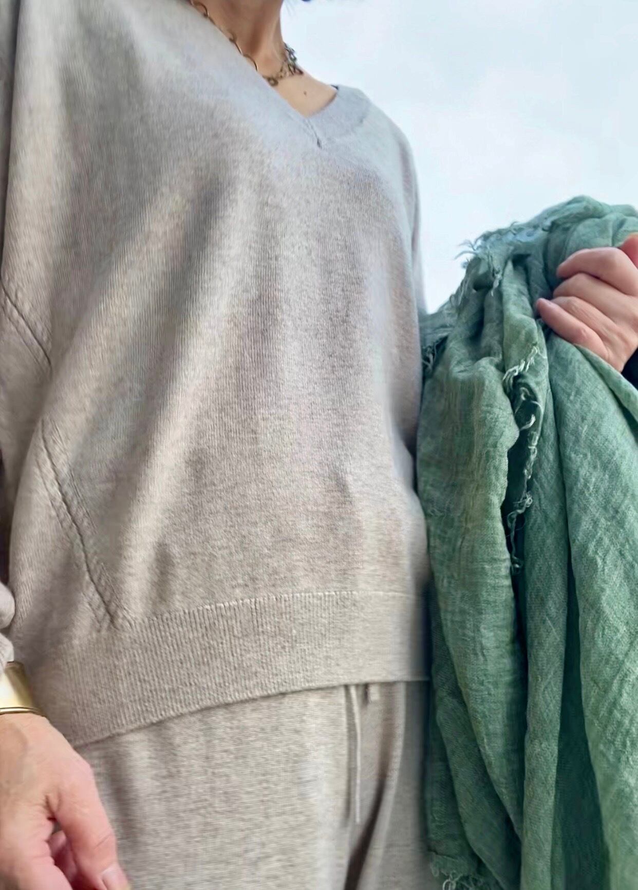 **GAUDI ウールカシミヤ混暖かベージュゆったりVネックセーターは、最高級のウールとカシミヤが贅沢にミックスされた、心地よい暖かさと滑らかさを兼ね備えた特別な一着です!イタリア製の厳選したニット素材を使用しており、優雅で落ち着いたベージュカラーは、どんなスタイルとも調和し、四季を通じて活躍します♪ ゆったりとしたVネックデザインが、こなれた印象を与え、ラグジュアリーで快適な着心地が嬉しいポイントです。**