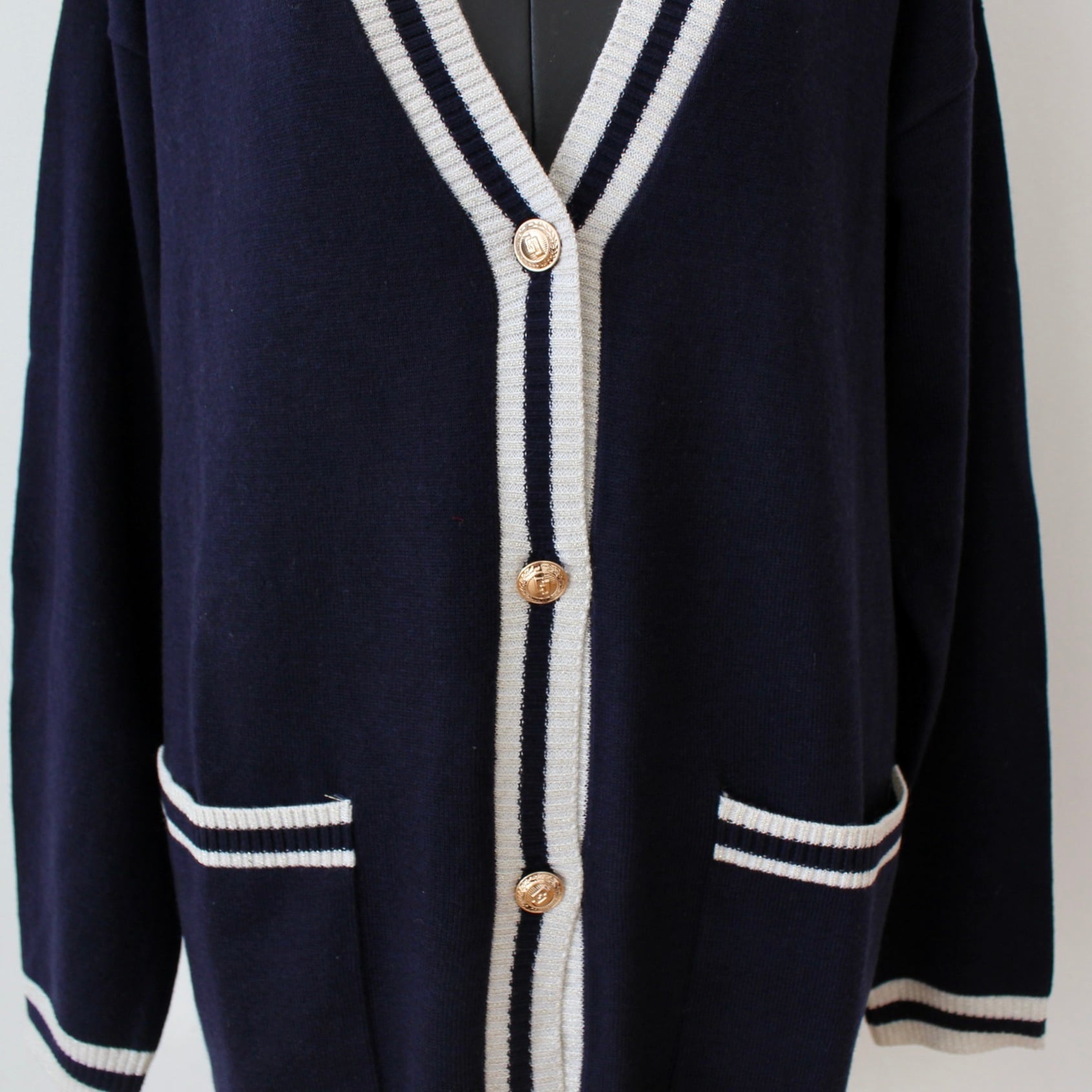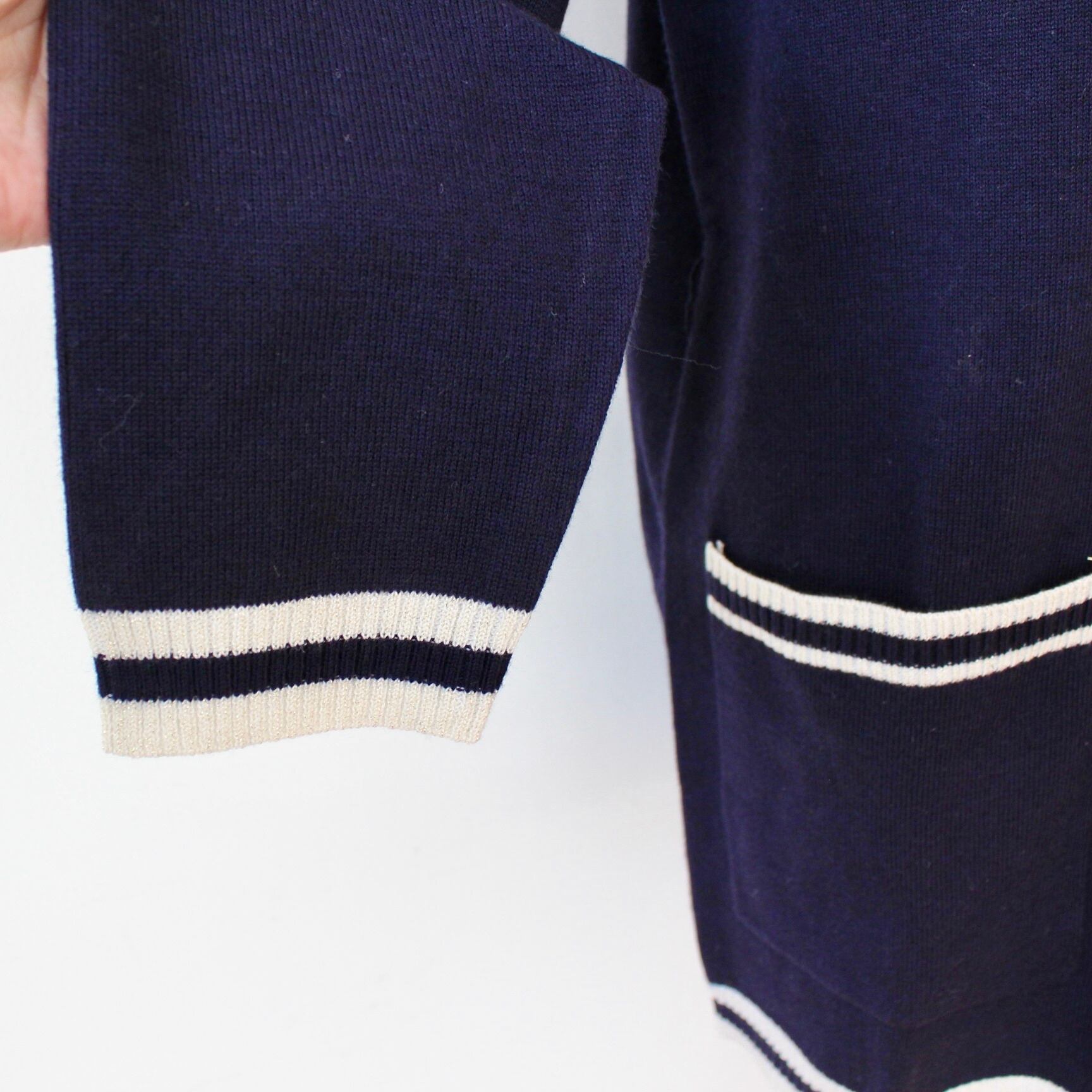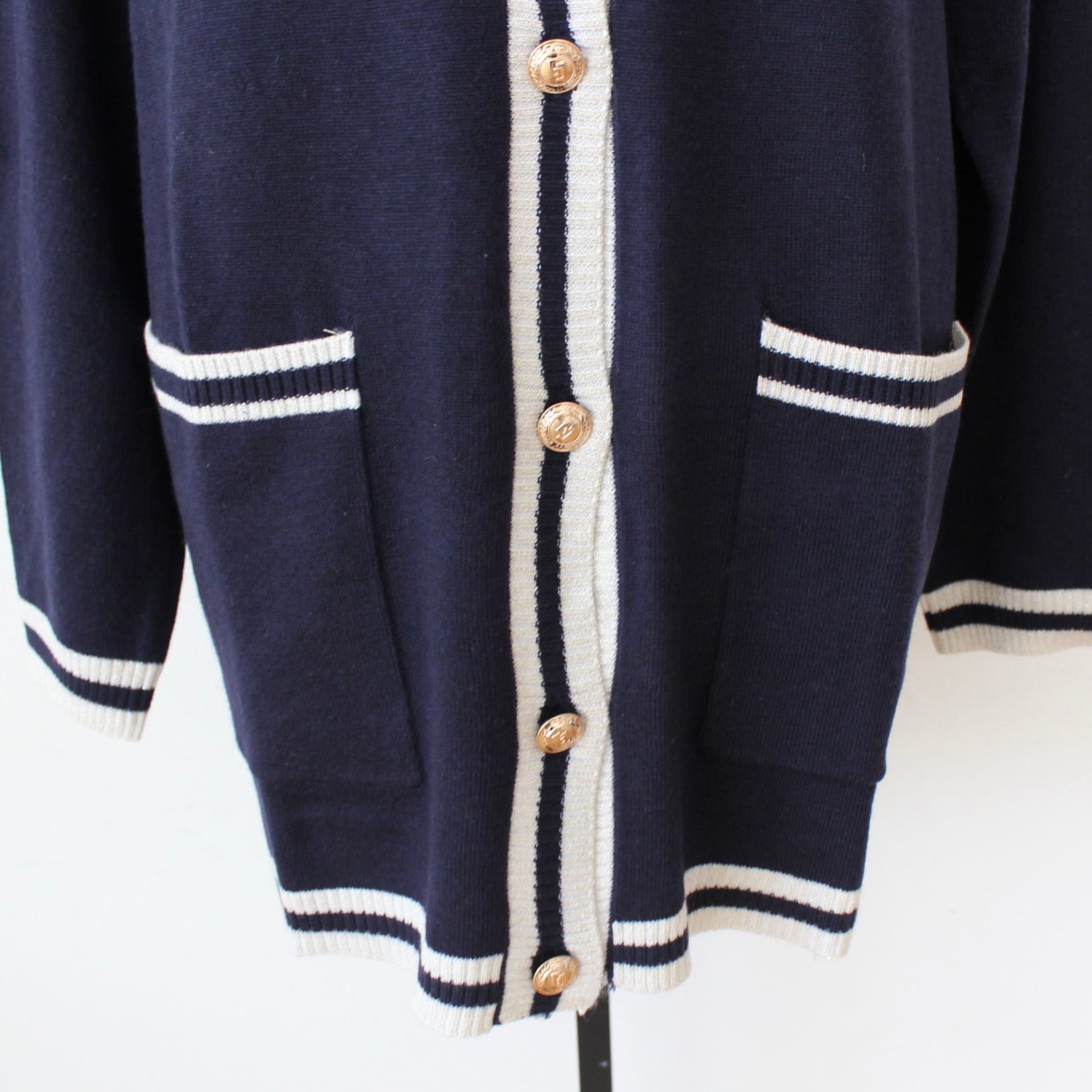 GAUDI ネイビーシルバーラメニットラインポイントVロングカーディガン ITALY:521BD53008 ¥29,000➕tax