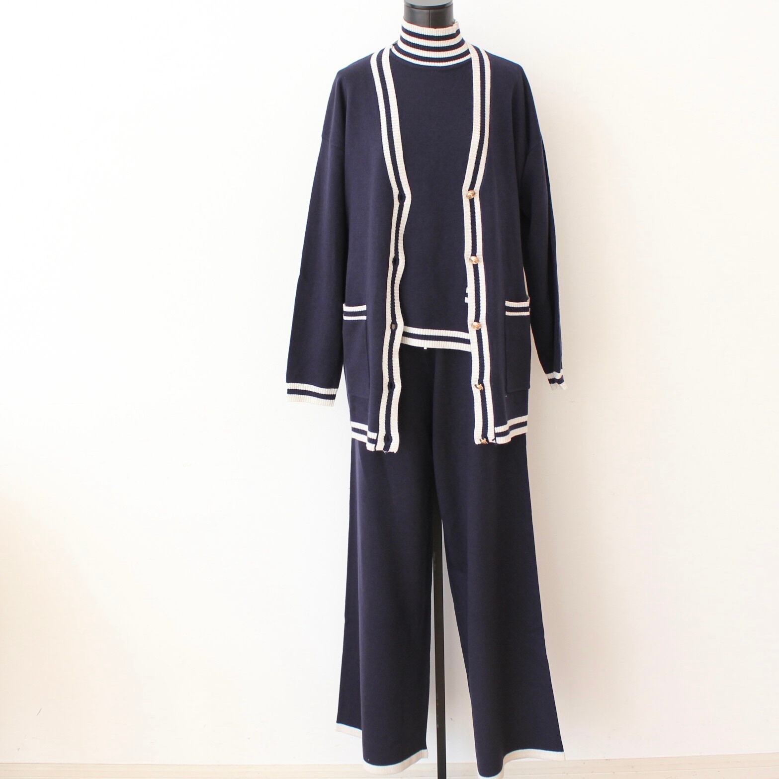 GAUDI ネイビーシルバーラメニットウエスト裾ラインポイントイージーニットパンツ ITALY:521BD23001: ¥28.000➕tax