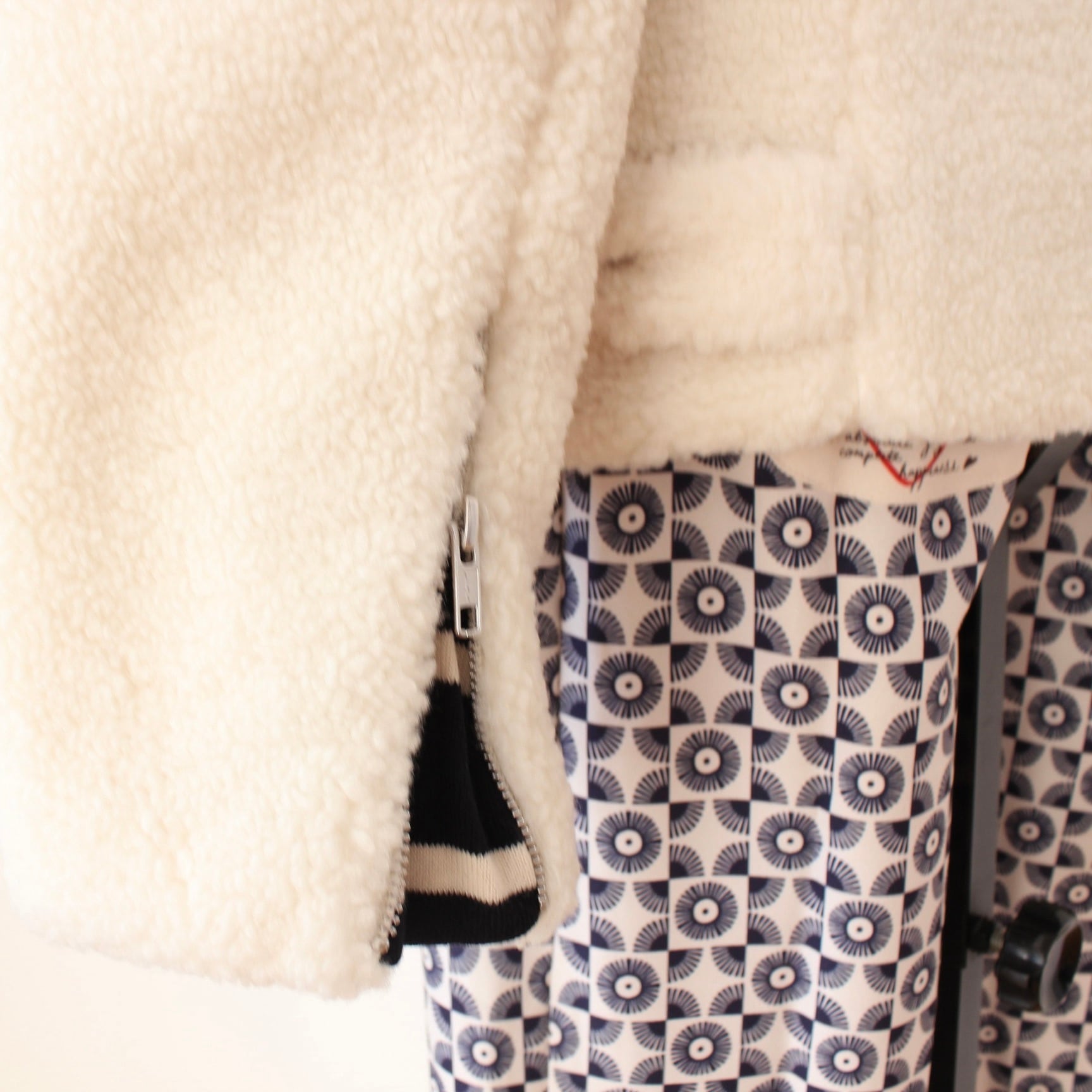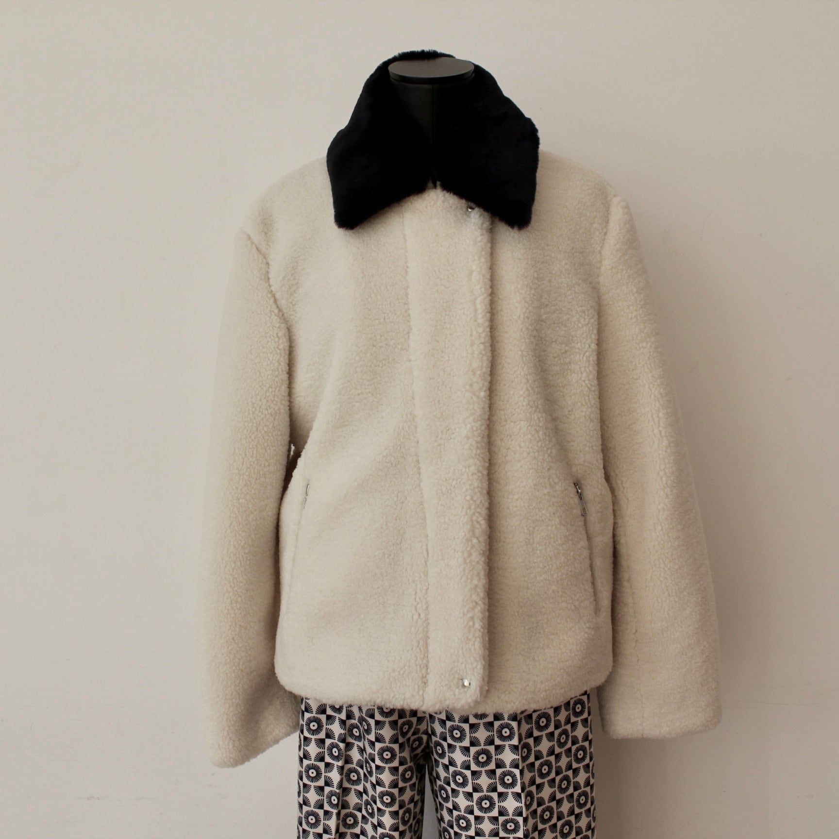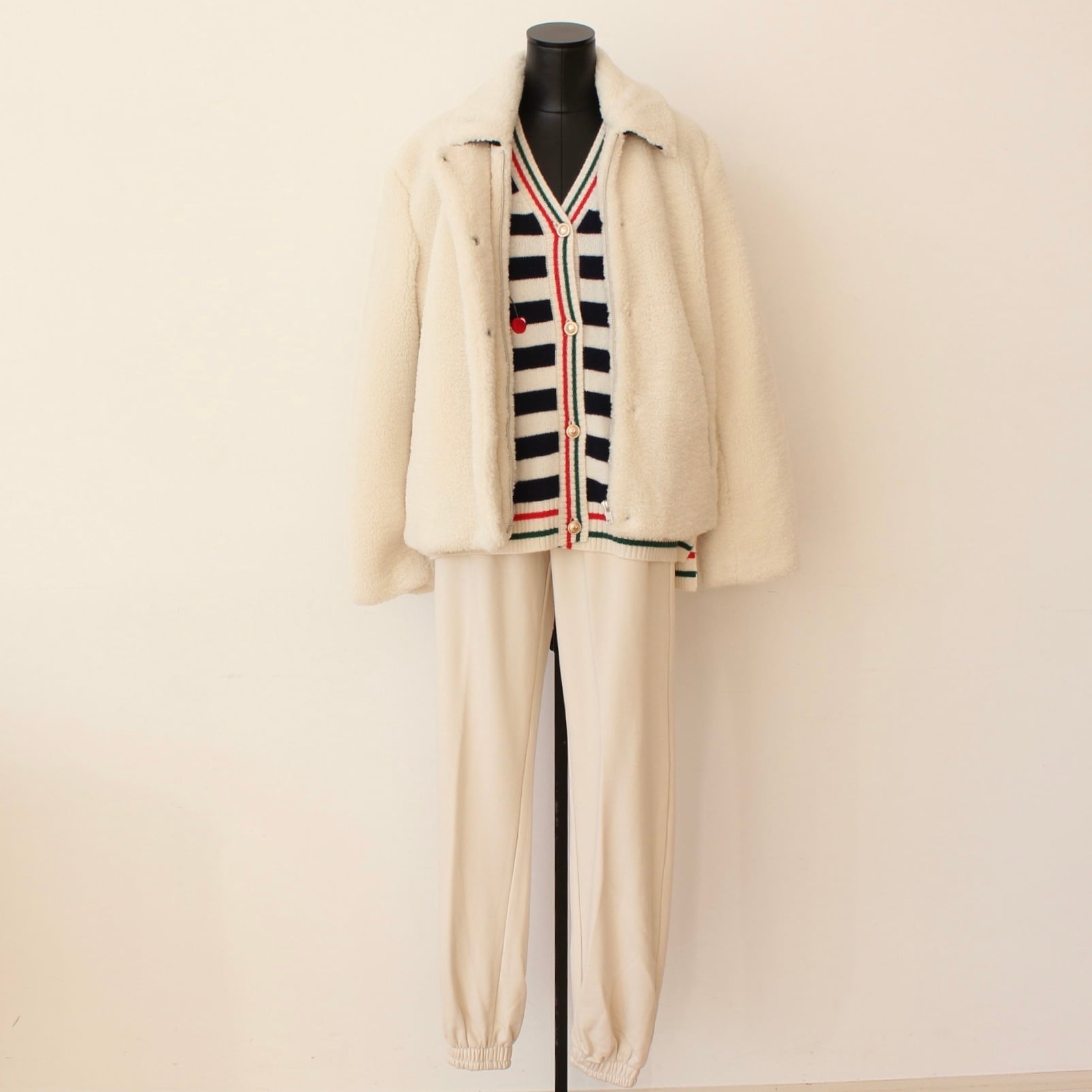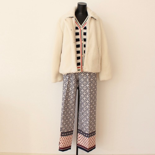VILAGALLO ホワイトボア2WAY裏地も可愛いボーダーニットハーフブルゾン SPAIN: VIL32850 ¥65,000