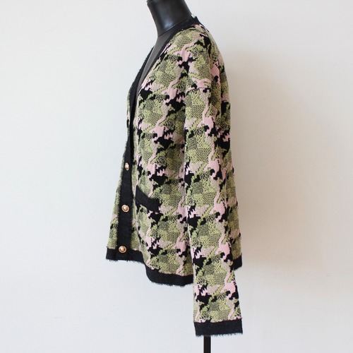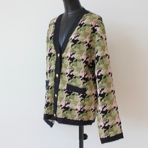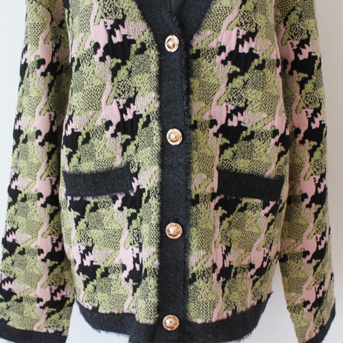 SILVIAN HEACH カシミヤウール混グリーン✖️ピンクミックスチェックVネックニットカーディガンITALY; GPA25270¥48,000+tax