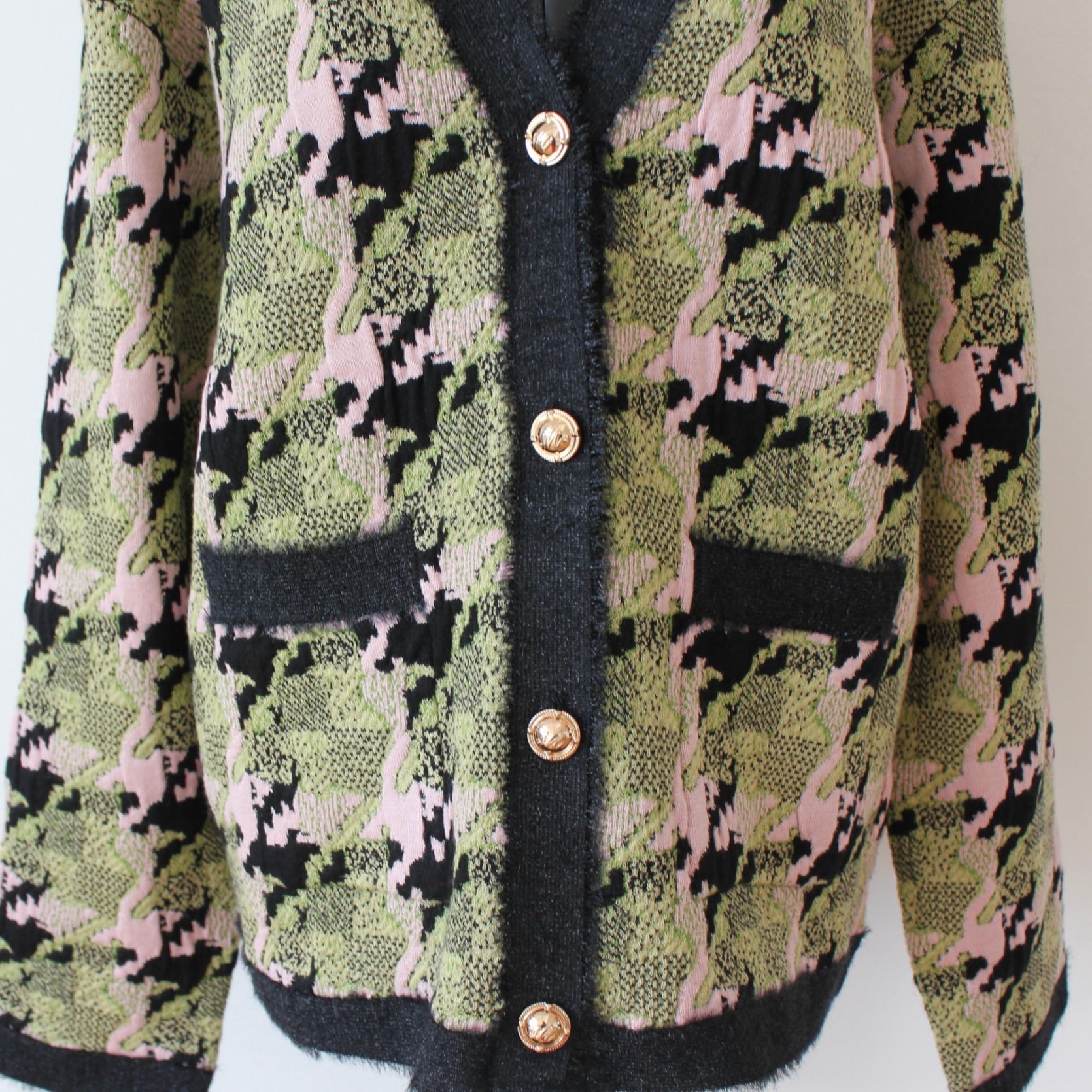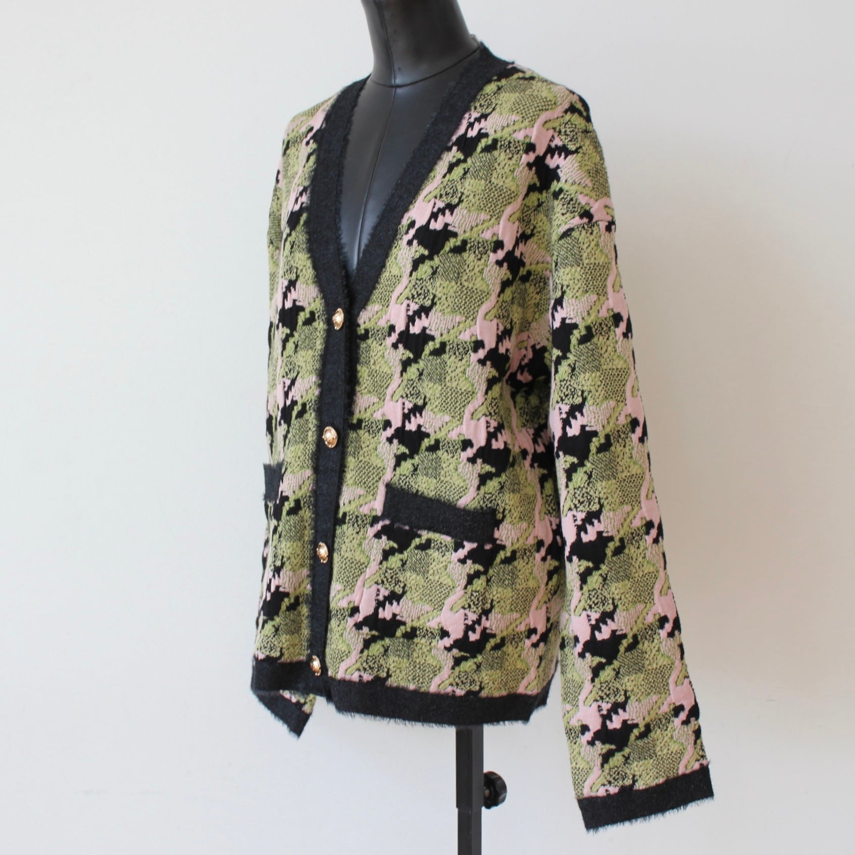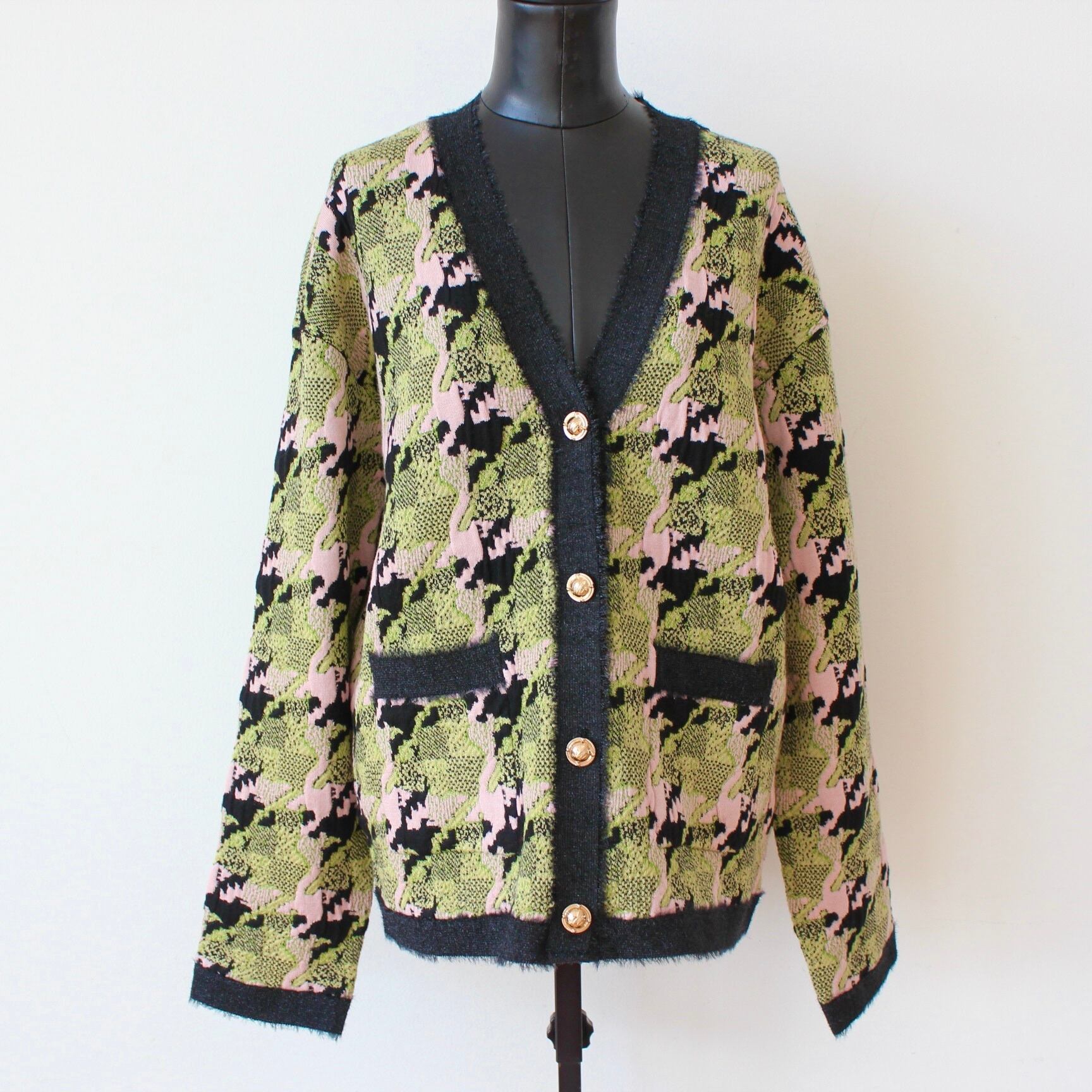 **SILVIAN HEACH カシミヤウール混グリーン✖️ピンクミックスチェッククルーニットカーディガンは、鮮やかなグリーンと柔らかなピンクのミックスチェックが特徴の、ファッション性あふれるアイテムです!イタリア製の高品質なカシミヤウールのしっかりした素材を使用しており、非常に暖かく、肌触りが優しいのが魅力です♪ Vネックデザインで、ゆったり身幅でスッポリヒップまでの丈で暖かく、カジュアルでありながらエレガントで上品な印象を与え、秋冬のコーディネートにぴったりの一着です。**
