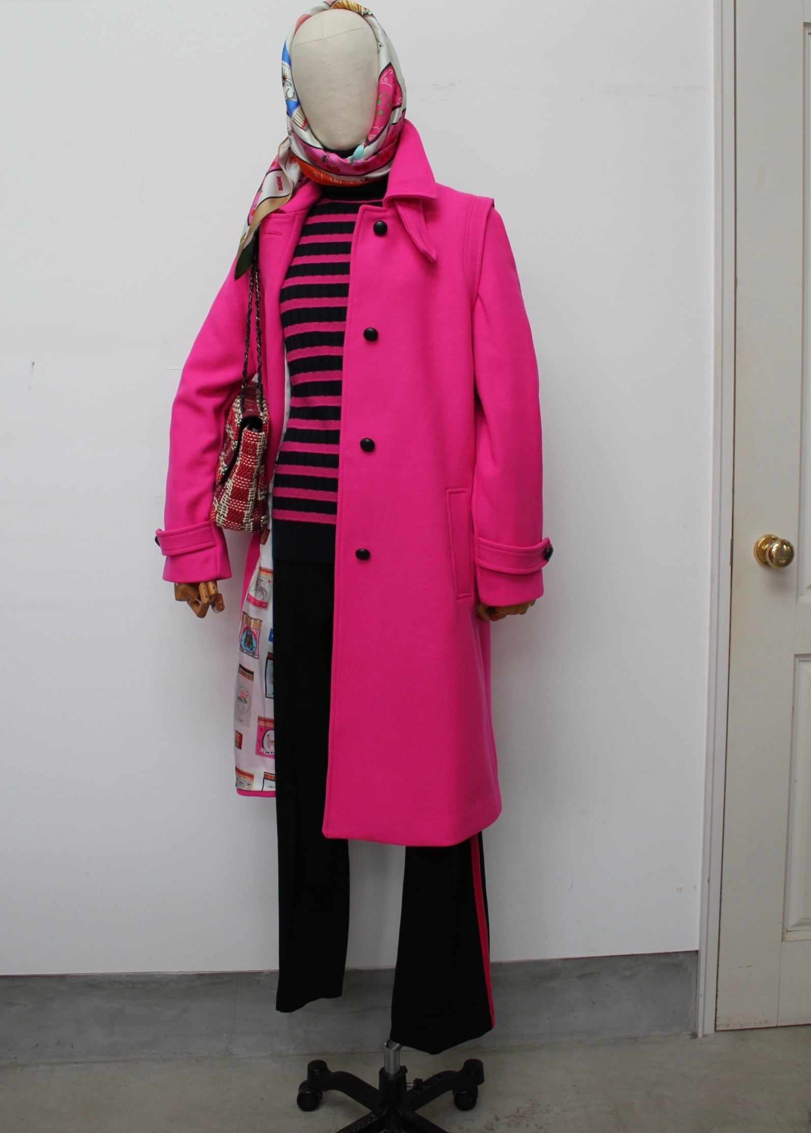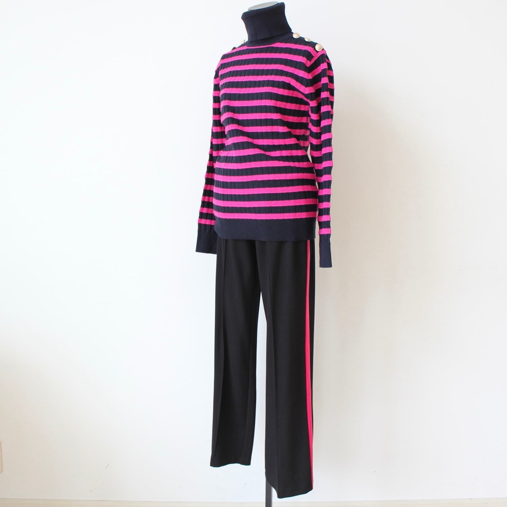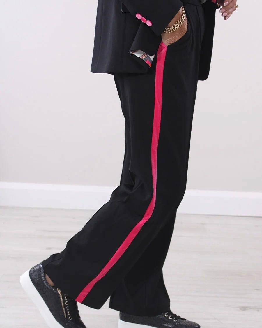 VILAGALLO ブラックピンクベロアサイドラインストレッチパンツ SPAIN: VIL32827 ¥29,000+tax