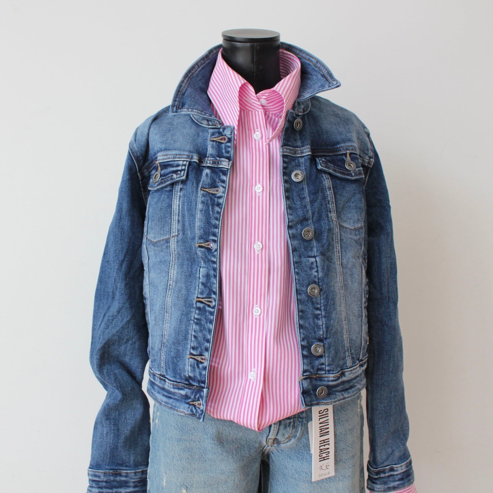 SILVIAN HEACH ピンク✖️ホワイトストライプパリモア襟美シルエットストレッチコットンシャツ ITALY: GPP26168 ¥17,000+tax