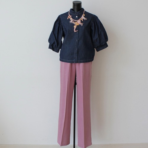 RINASCIMENTO インディゴバルーンスリーブスタンドカラーブラウス ITALY: RIN12795 ¥28,000+tax