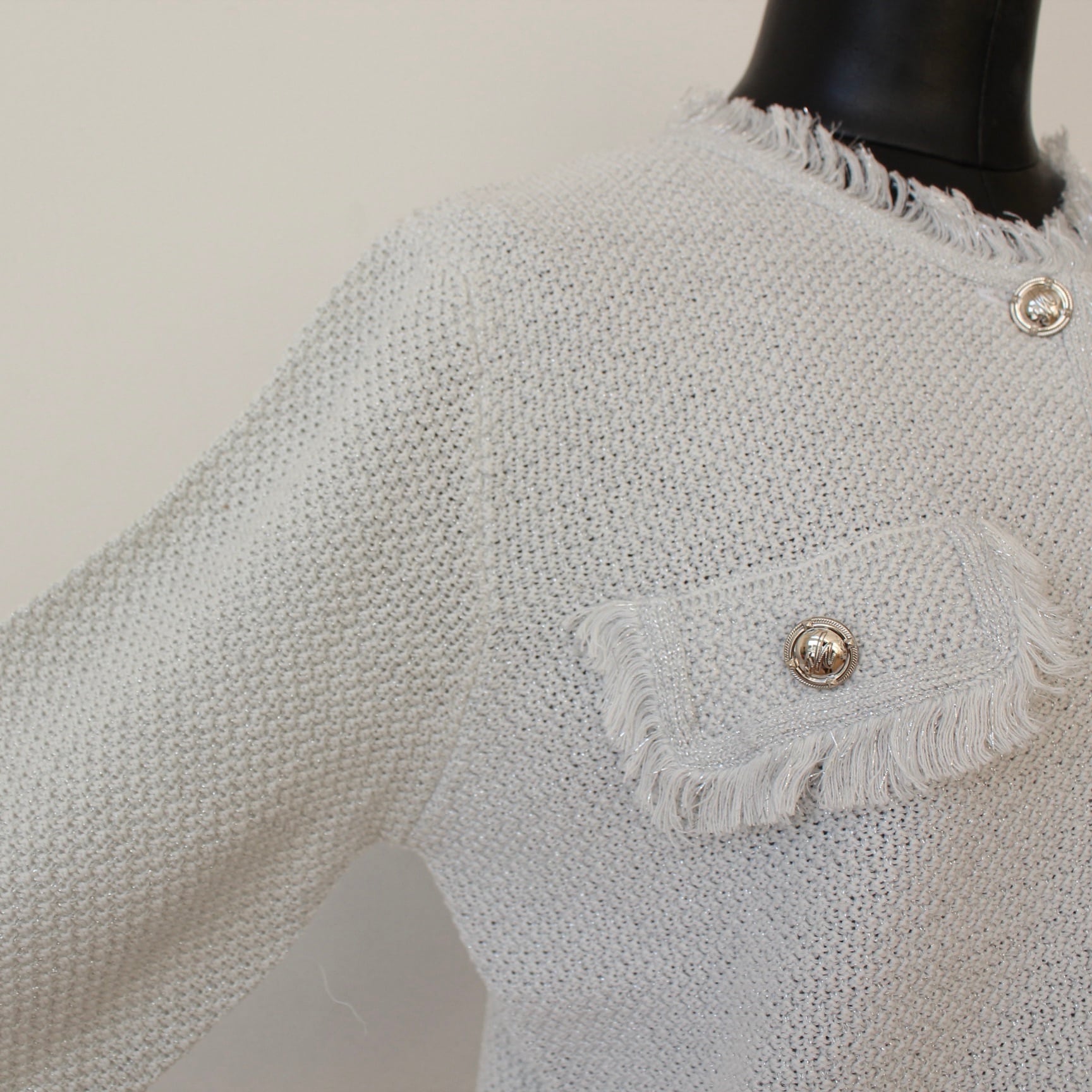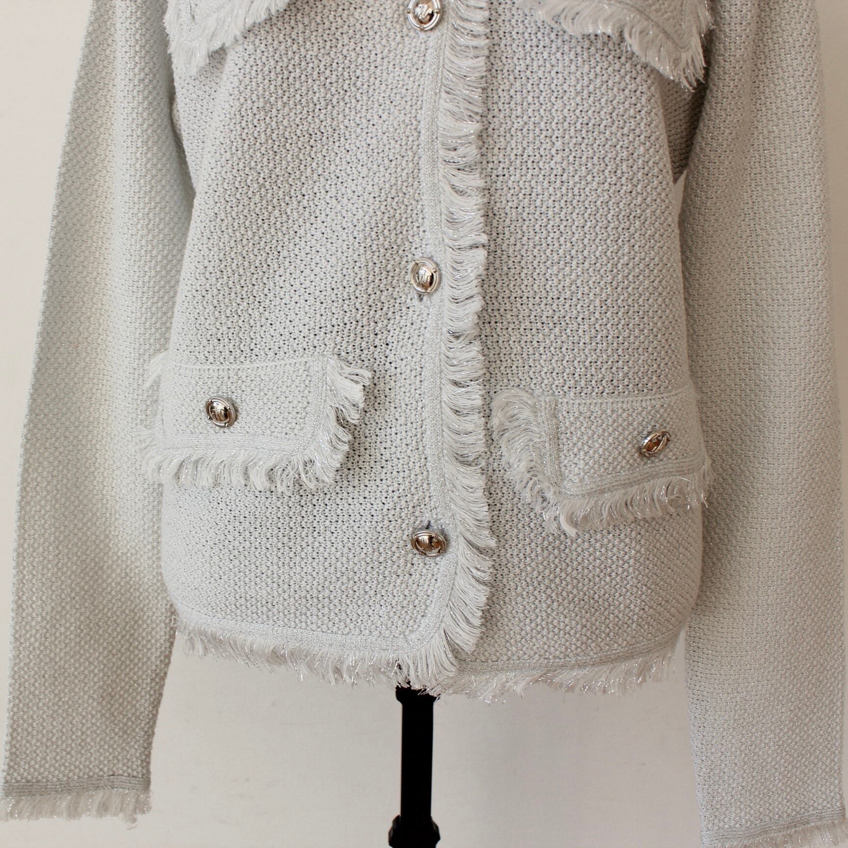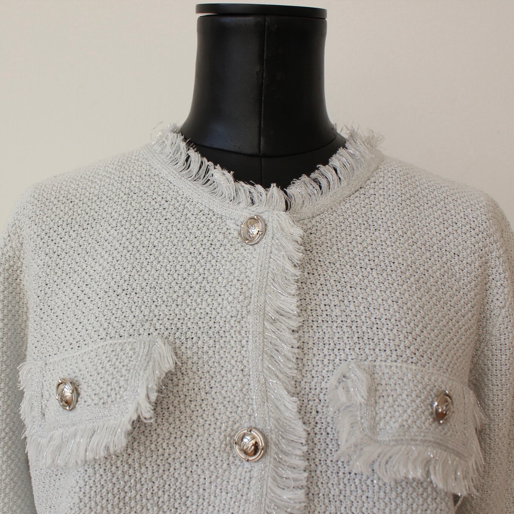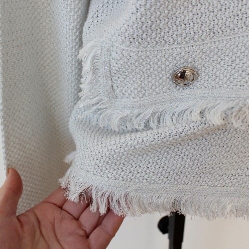 SILVIAN HEACH フリンジポイントシルバーラメ入りホワイトサマーニットジャケット ITALY; GPp26245 ¥22,000+tax