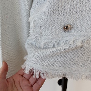 **SILVIAN HEACH フリンジポイントシルバーラメ入りホワイトサマーニットジャケットは、エレガントさと個性を兼ね備えた特別な一着です!ホワイトのベースにシルバーラメが輝き、フリンジディテールが遊び心をプラス。軽やかなニット素材は、夏の季節でも涼しげに着こなせるアイテムです。さらっと羽織るだけでスタイルに華やかさを加えてくれます♪**