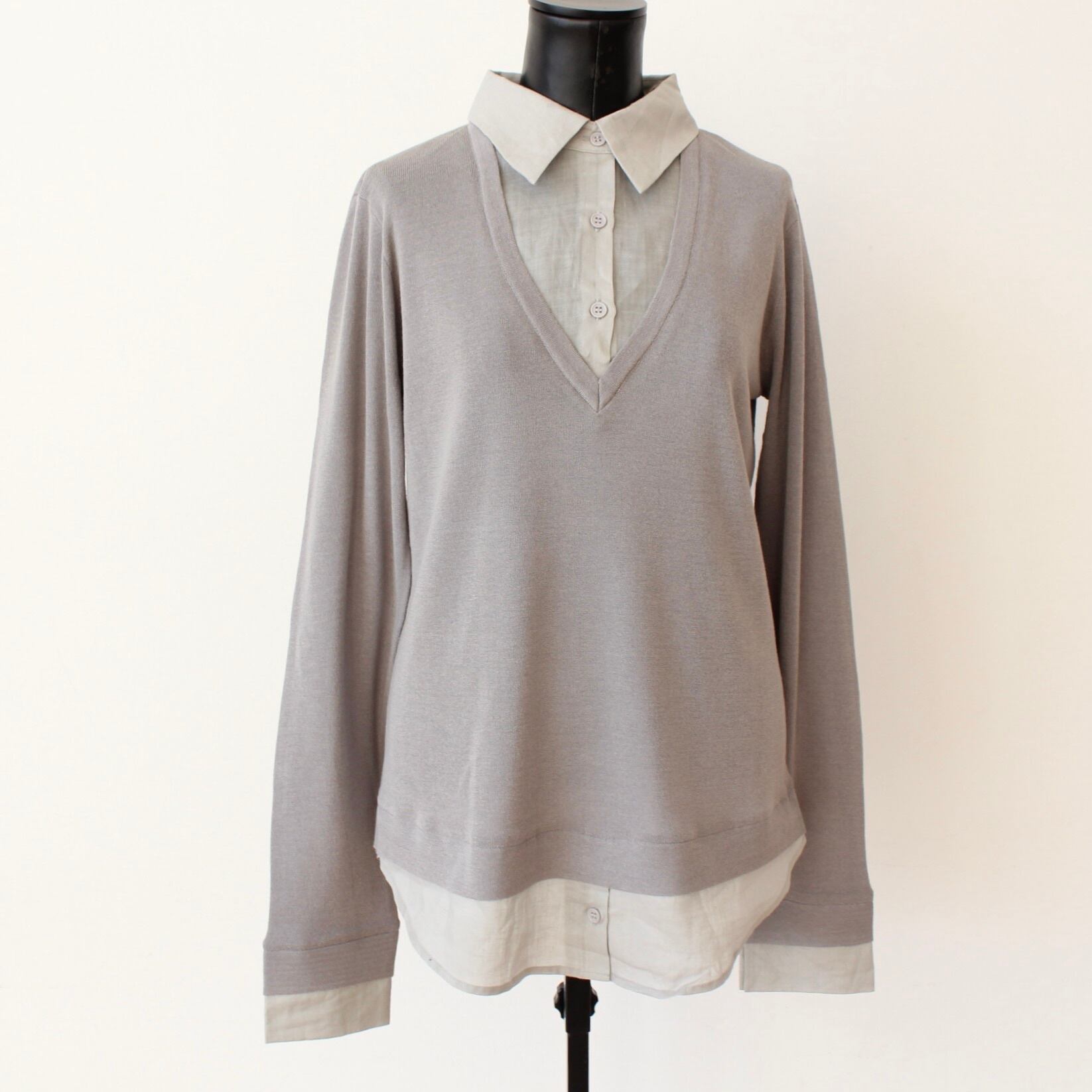 SILVIAN HEACH ライトグレーコットンブラウス✖️サマーニットドッキングトップス ITALY; GPP26432 ¥26,000+tax