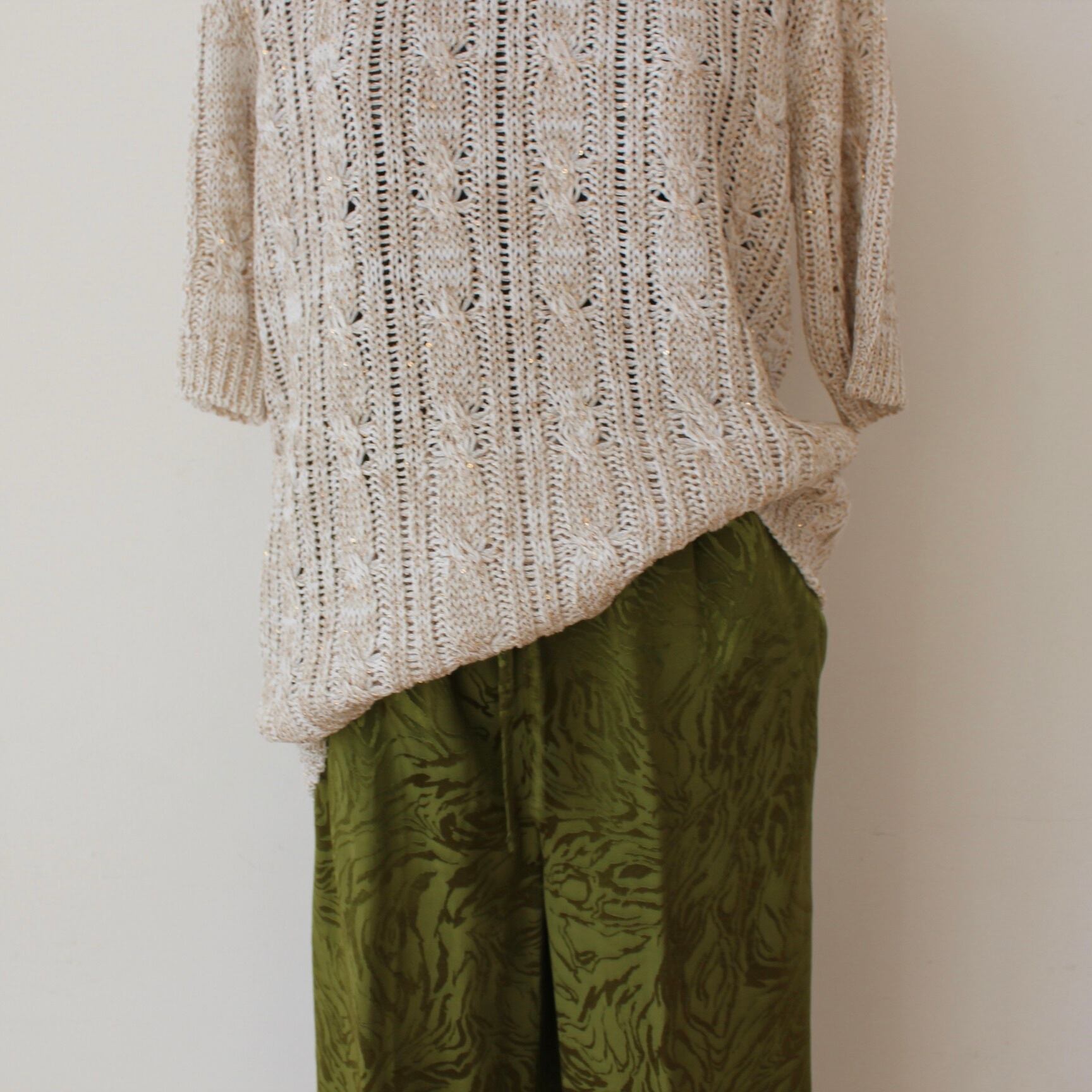 SILVIAN HEACH ミリタリーカラーゼブラ柄ウエストゴム滑らかレーヨン素材フレアーパンツ ITALY; GPP26026 ¥17,000+tax