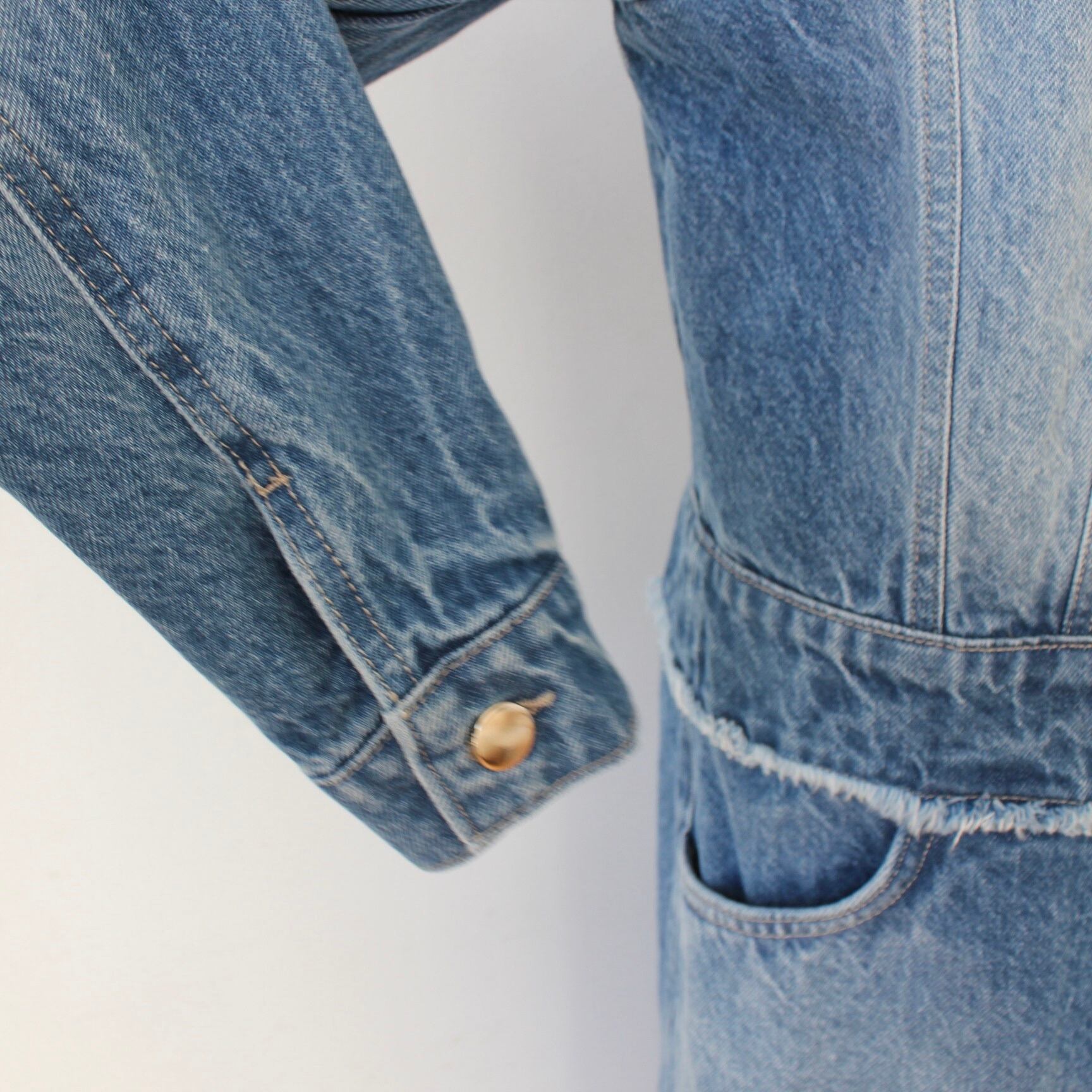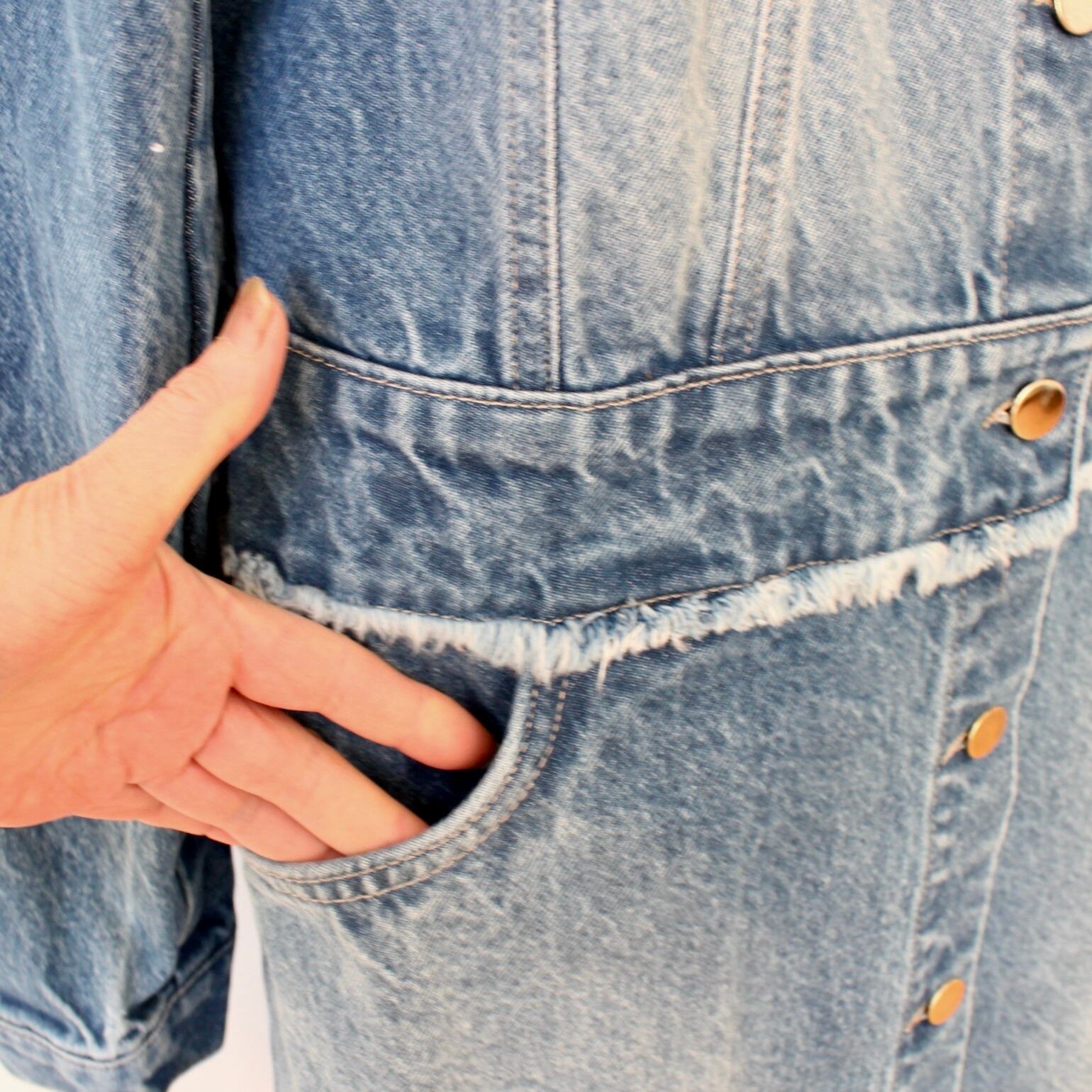 **RINASCIMENTO デニムフロントボタン2wayワンピースは、洗練されたデザインが特徴の特別な一着です!デニム素材が持つカジュアルさと、フロントボタンのディテールがシンプルながらもエレガントな印象を与えます。2way仕様なので、スタイルやシーンに応じて自由自在にワンピースとして、アウターとして着こなせるのも魅力です。着心地も良く、日常のカジュアルコーディネートにぴったりのアイテムです♪**