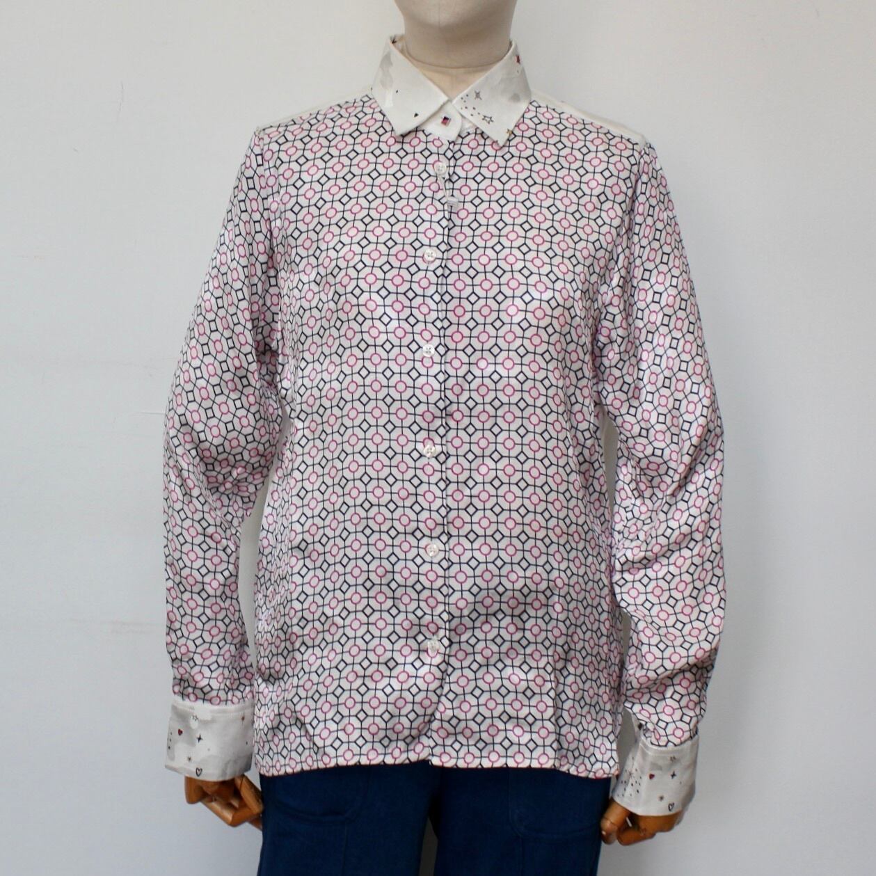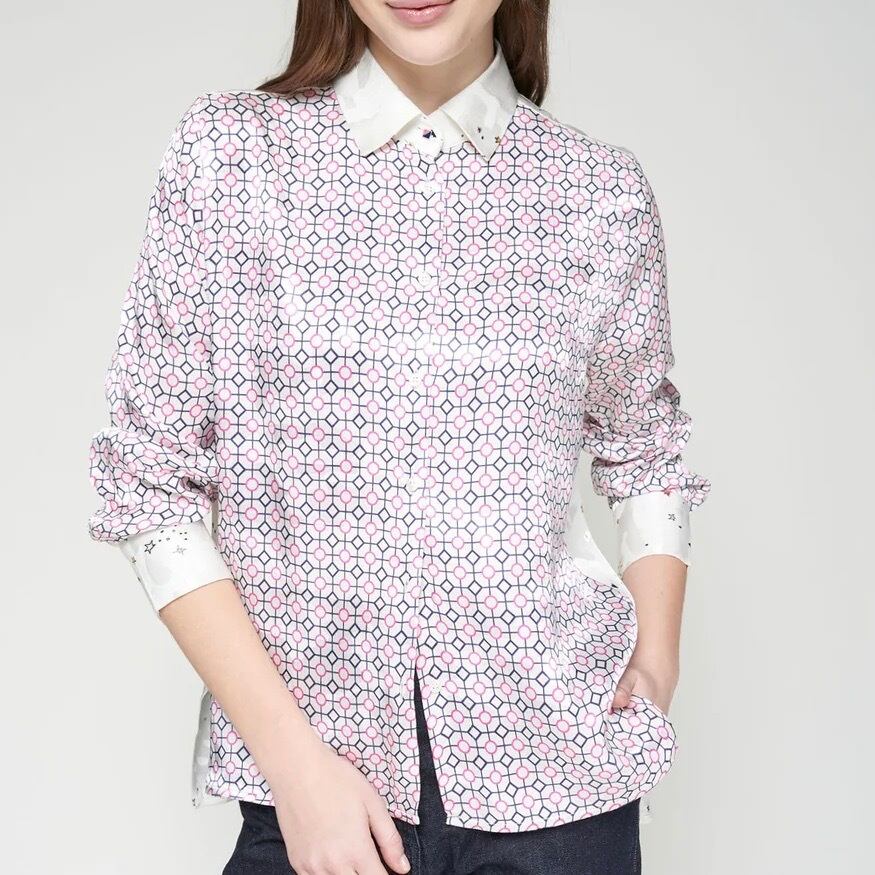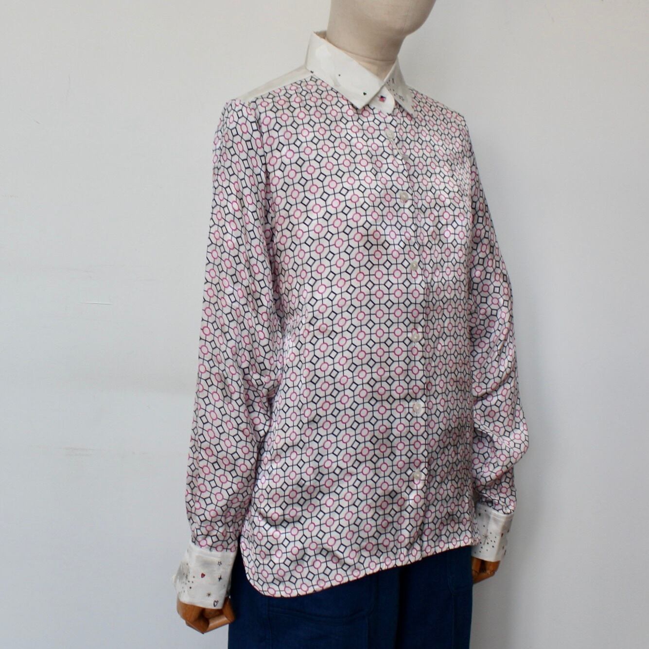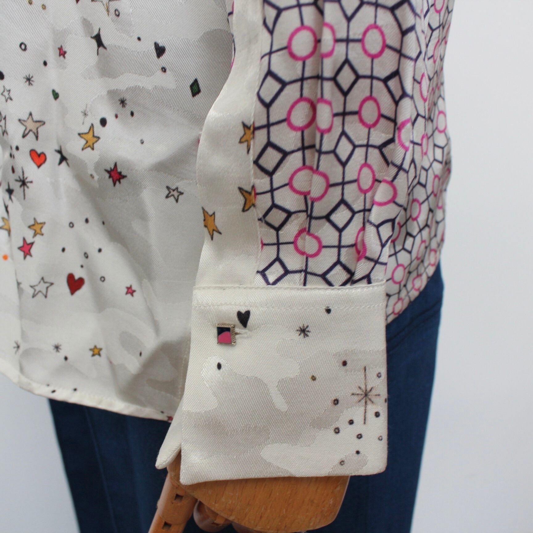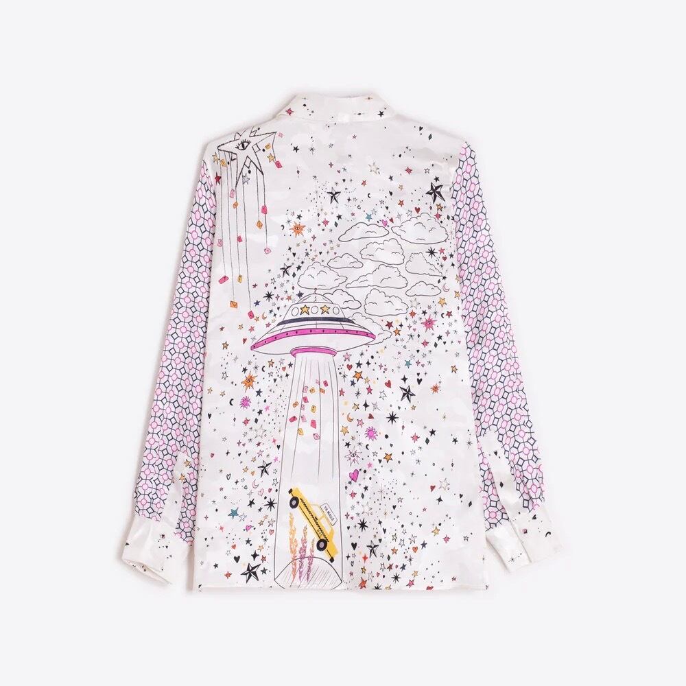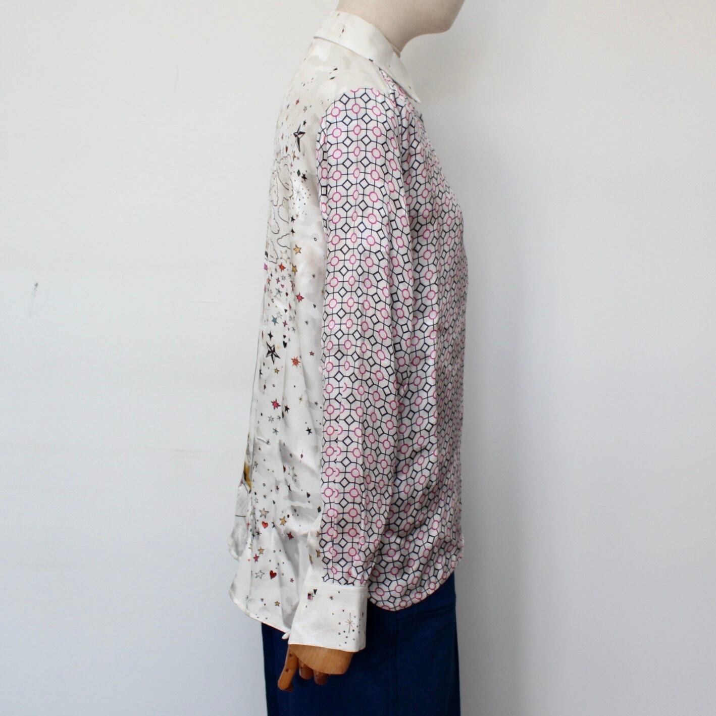 VILAGALLO ホワイト宇宙✖️幾何学プリントエコヴェロレーヨン素材ブラウス SPAIN: VIL32974 ¥29,000+tax