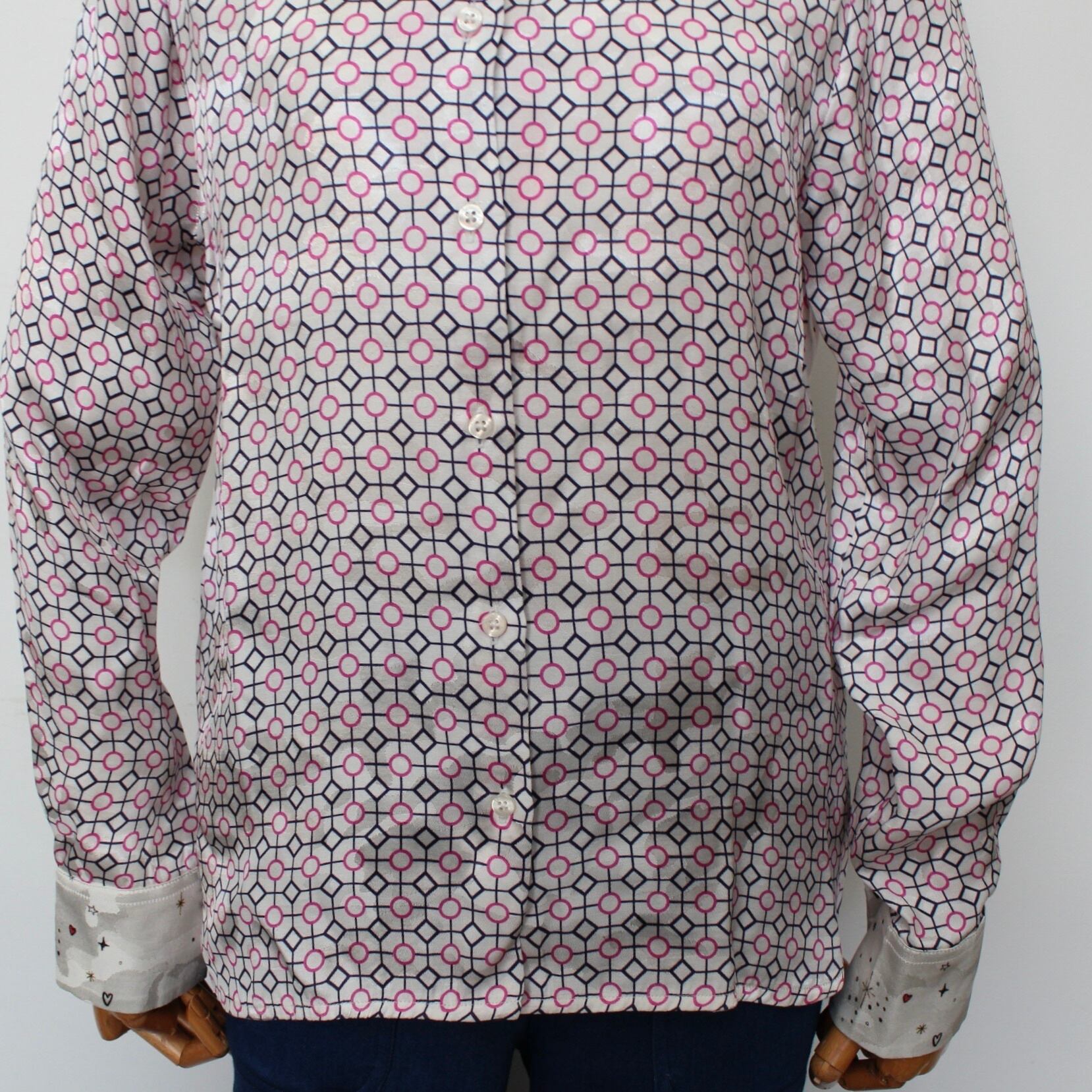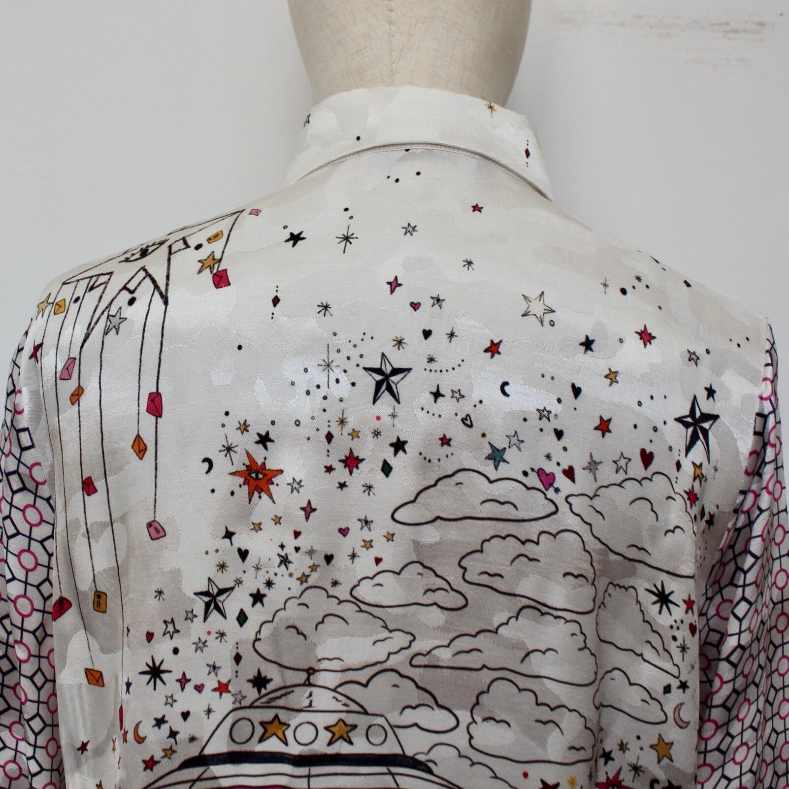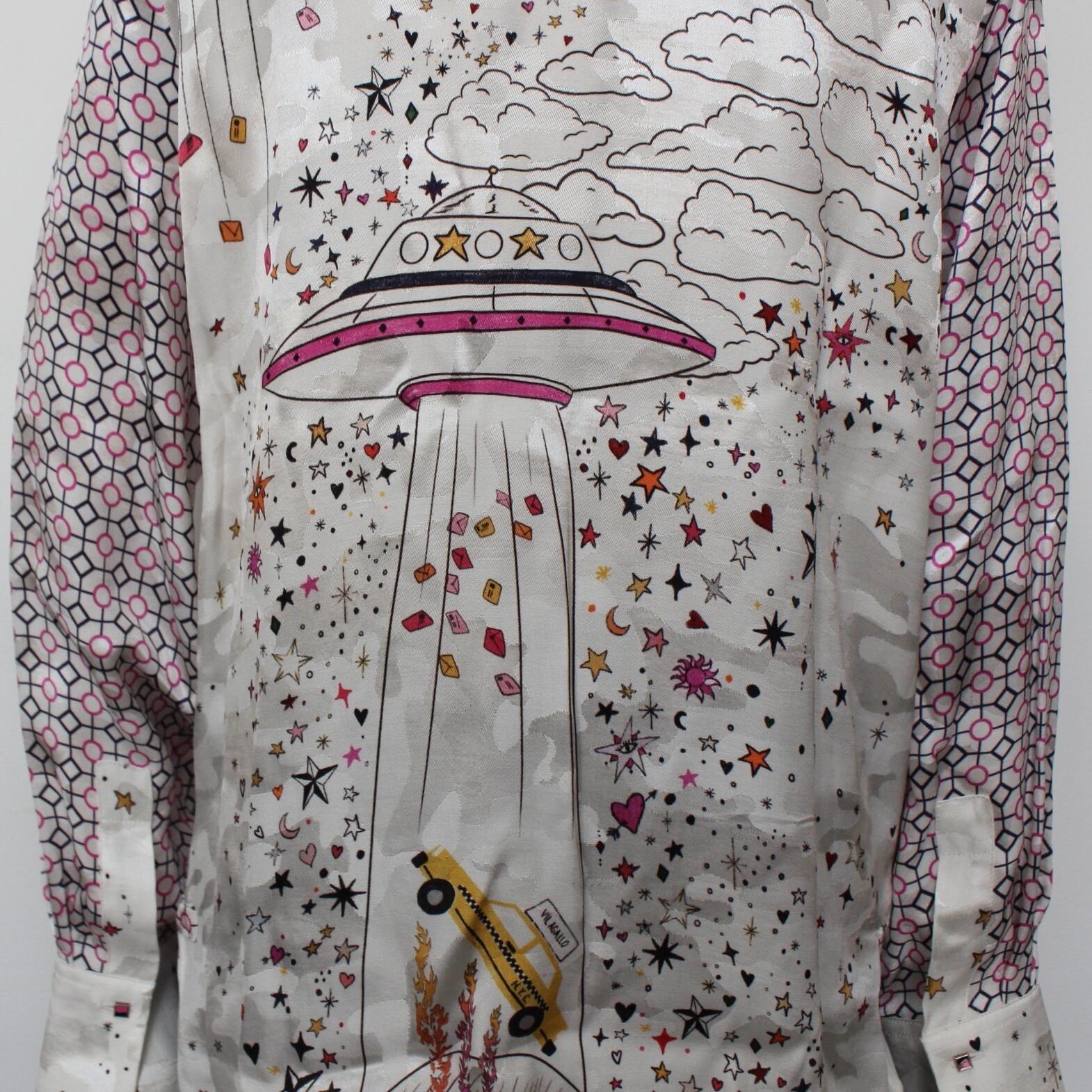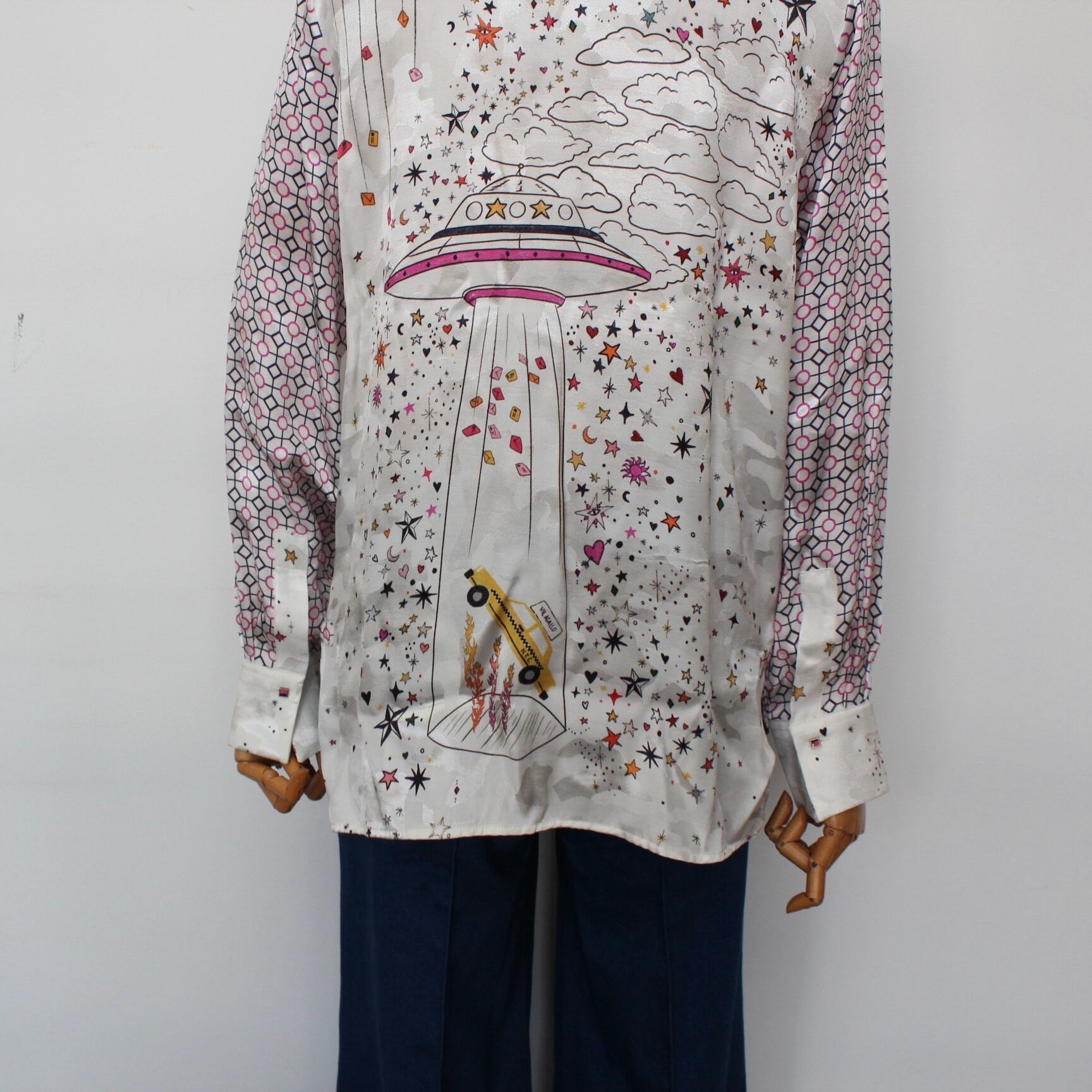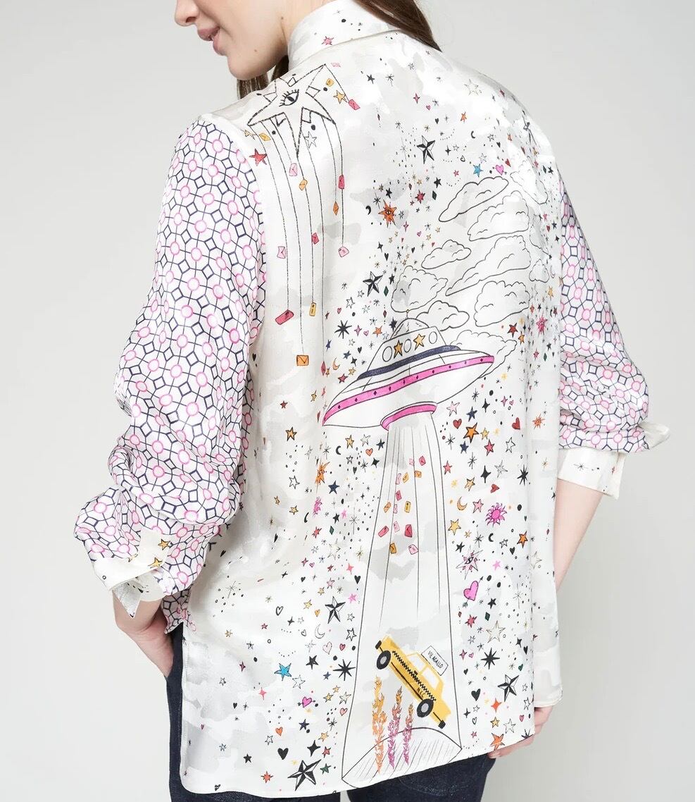 VILAGALLO ホワイト宇宙✖️幾何学プリントエコヴェロレーヨン素材ブラウス SPAIN: VIL32974 ¥29,000+tax